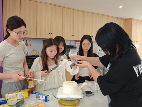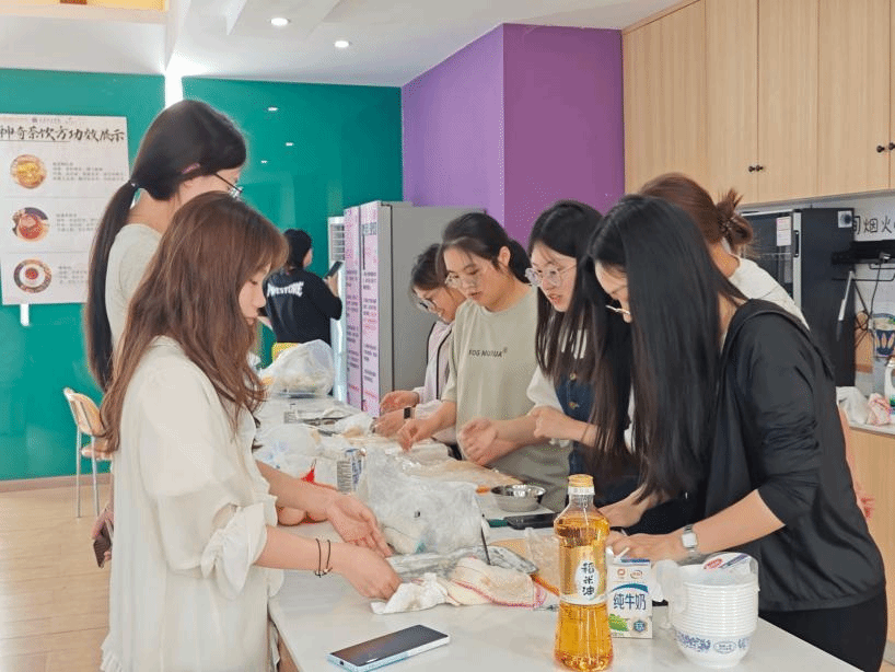罗美琪老师则为培养学生们对生活的仪式感与热爱,针对网络工程1、2班的学生开展了烘焙课堂实践体验,小组负责人为同学们采购了必要的物资与糕点原材料,包括面粉、糖、奶油、水果、酸奶等,以及制作糕点所需的模具和工具。制作的过程是考验动手能力与团队协作的时刻,通过共同完成一件事、一项作品让同学们凝结共同的记忆,在互动与交流中加深同学们之间的交流与情谊联结。