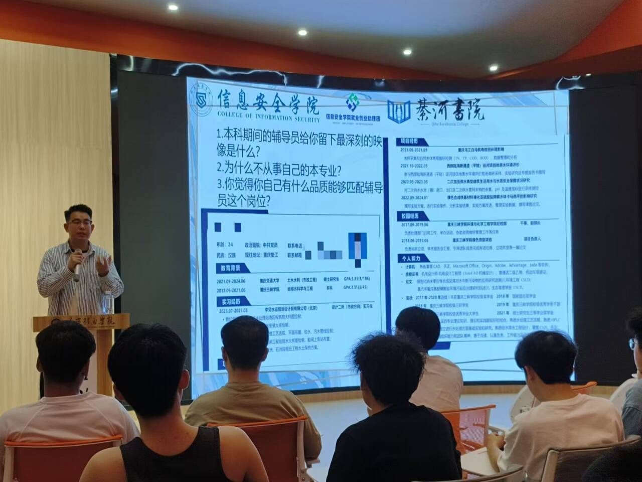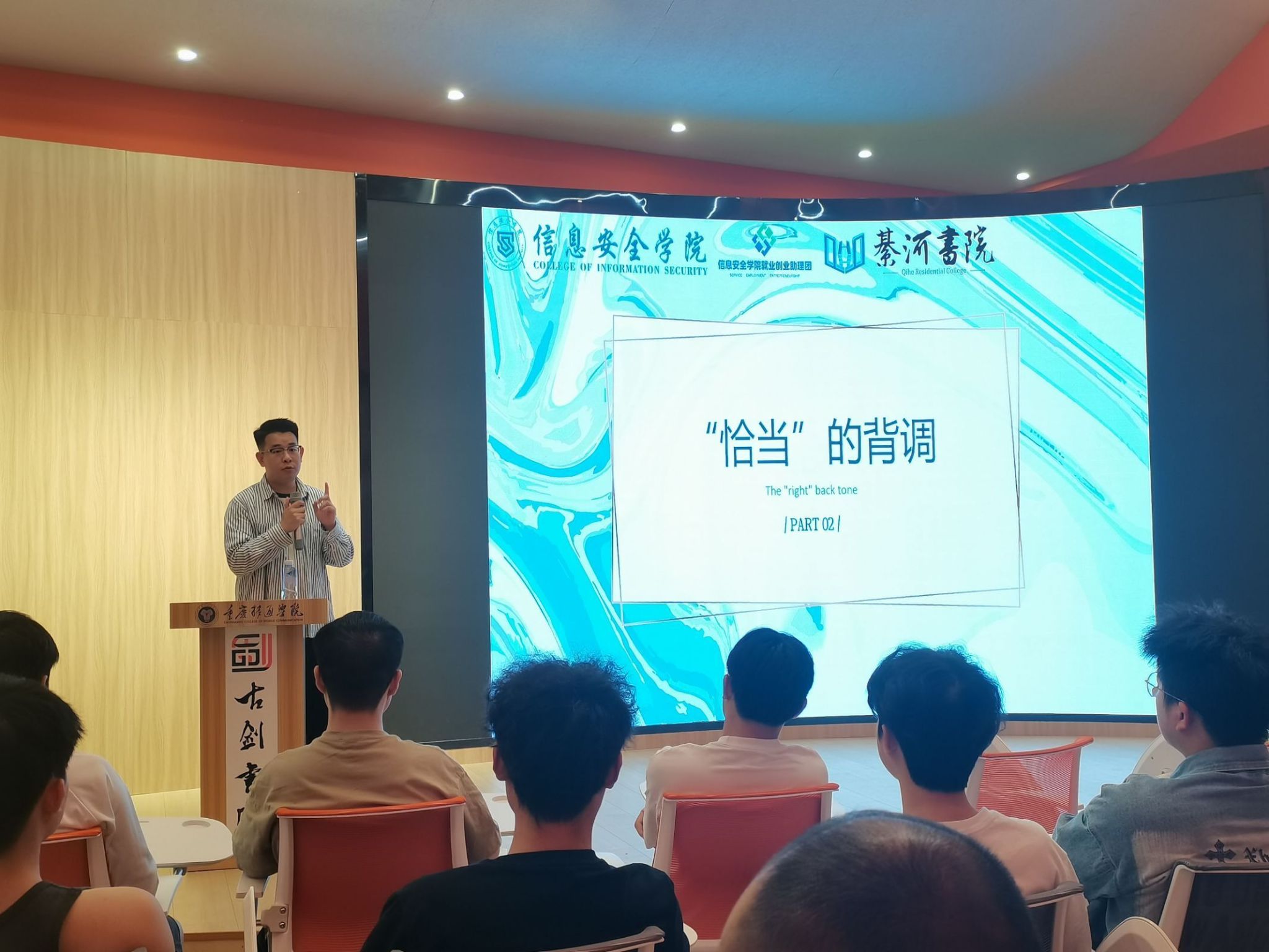 为了帮助大学生更深入地了解职场竞争的实质和技巧,积累宝贵的实践经验,由信息安全学院团总支就业创业助理团举办的“搏击职场·筑梦青春”信息安全学院“青云·茶话会”之团辅活动第二期于2024年5月11日15:00—17:00在古剑书院含光·报告厅开展。本次活动有幸邀请到来自綦河书院的白洪雨老师为大家分享。活动共计50余人参与,由李佳津同学主持。