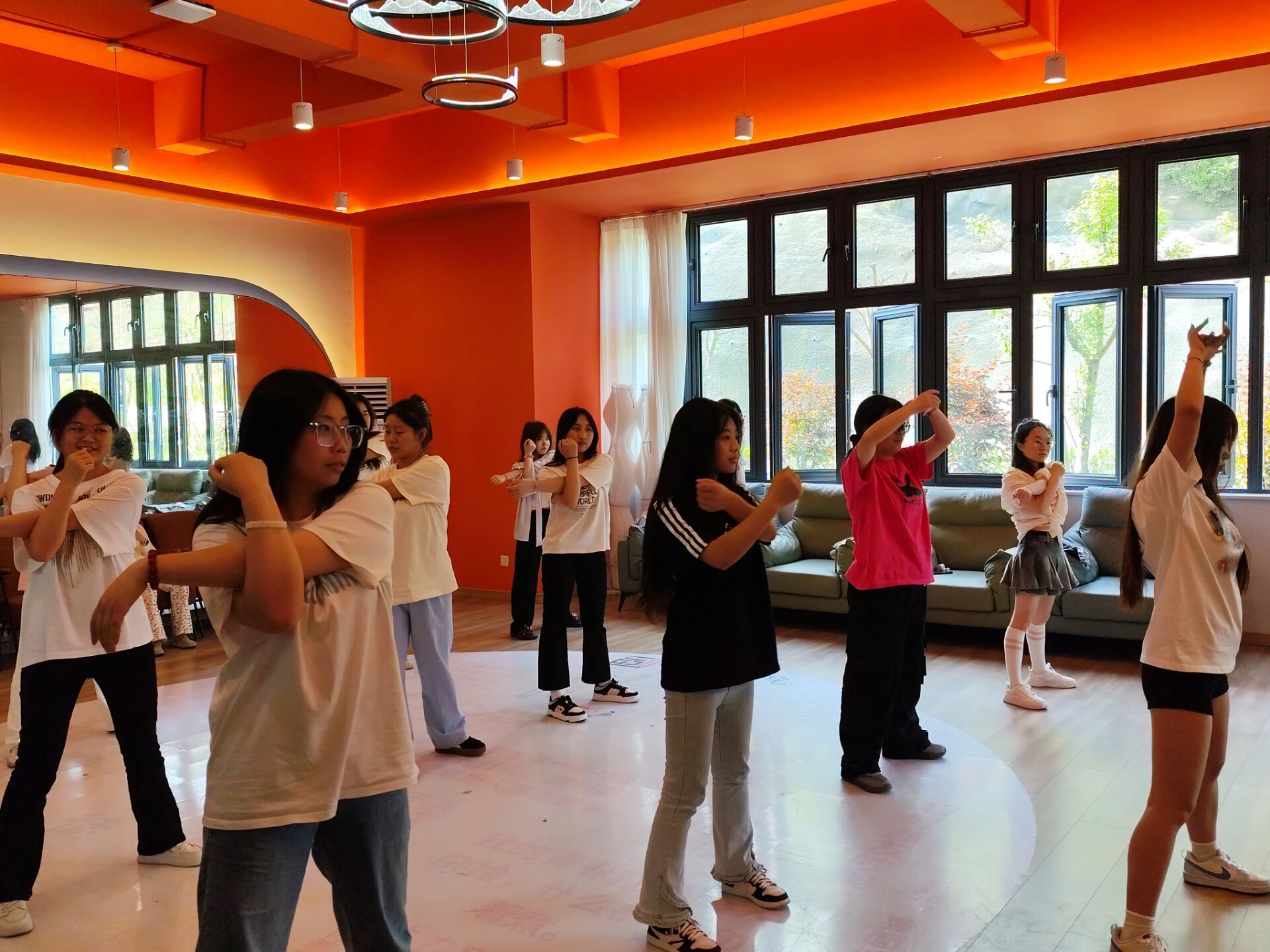 随后,在动感十足的音乐节奏中,减脂操活动正式拉开序幕。音响设备齐全,音乐节奏明快有力,为减脂操训练营造了浓厚的氛围。参与者们身着运动装,精神饱满,热情洋溢。随着音乐的节奏,同学们跟随着领操同学的步伐,在排练厅舞动青春。他们的动作越来越熟练,身姿也越来越优雅。在轻松愉快的氛围中,我们观察员发现,同学们迅速掌握了减脂操的要领,并投入到热情洋溢的练习中,足以看出活动参与者兴致高昂。