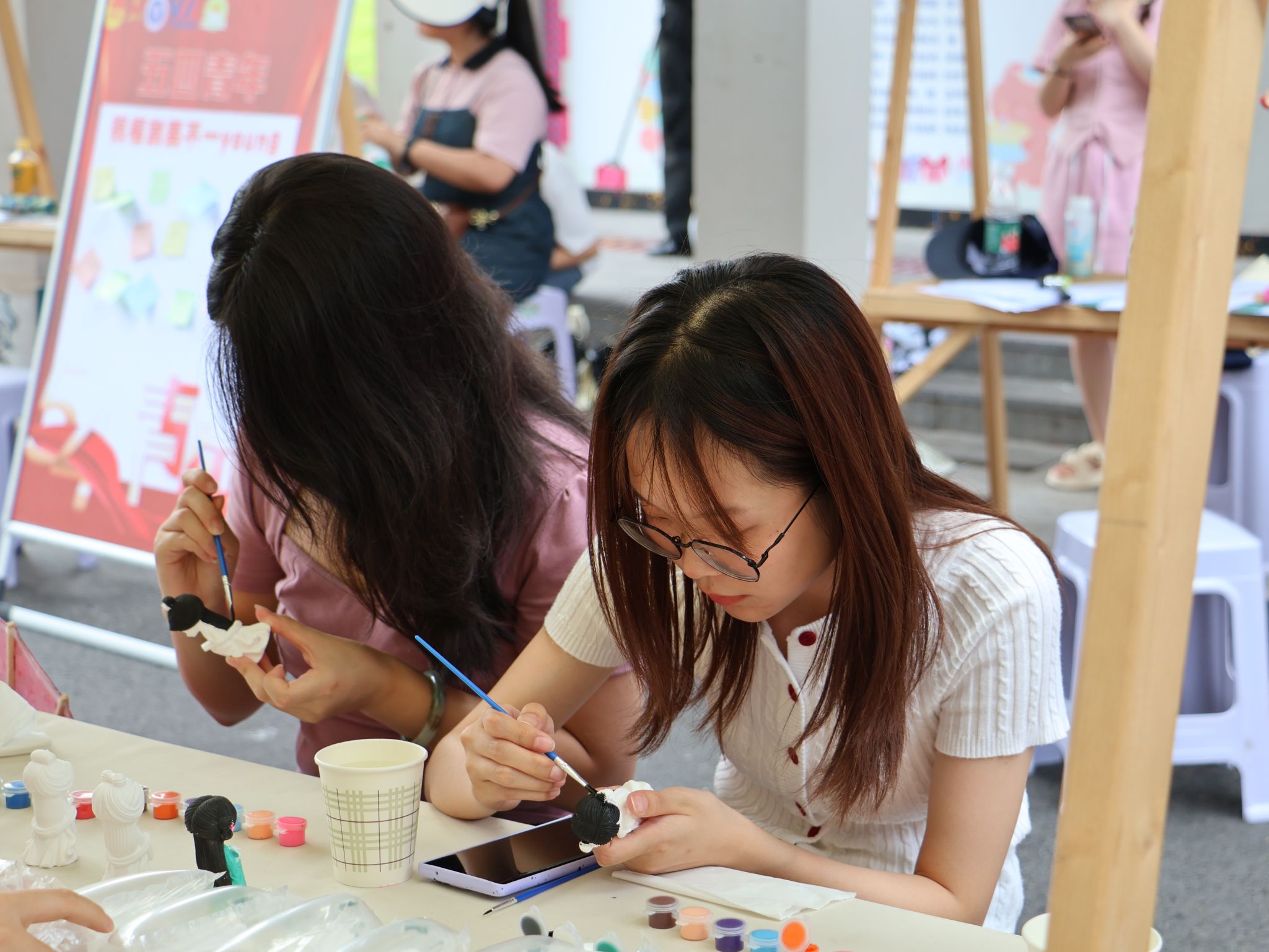 “青马工程”完骨中阶班着力打造不一young的体验平台,设置油纸伞、石膏娃娃彩绘,拓印,砺石成画等沉浸式体验项目,培养学员独立创作能力,鼓励学员们在传统的基础上进行创新尝试,创造出具有独特风格和个性的作品。在动手间传递对美的追求,用“创作+艺术展”的形式激发他们的创新思维,提高审美力、创造力、专注力。