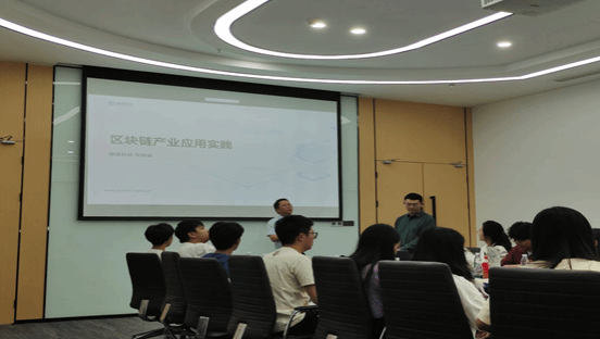 在参观展厅的过程中,宋吕老师给大家介绍了区块链目前应用场景,已实现多层次,宽领域覆盖,其通过展现经典案例向同学们介绍区块链的目前市场上的应用,包含了金融,农业,政务等多方面,同学们纷纷表示对区块链工程专业的了解,并明白国家与企业对区块链相关领域的重视。激发了同学们对未来职业发展的无限向往。