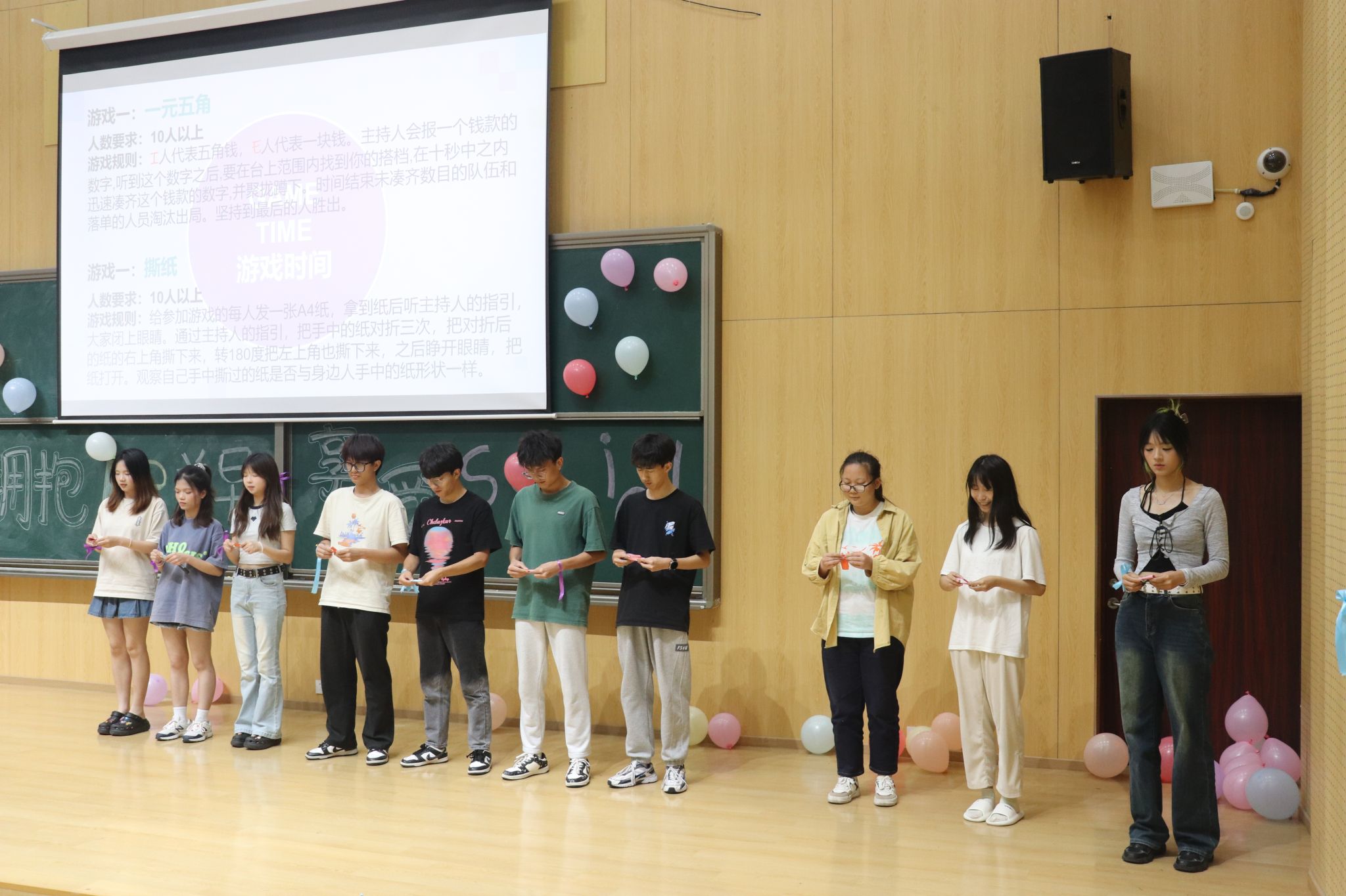 “烦快的生活人人唾弃,有趣的游戏人人参与”随着第二轮的游戏开始,每位参与者都拿到了一张白纸,按照规则,他们需要闭上眼睛,仅凭主持人的口头指令,尝试将手中的纸撕成特定的形状。由于无法看到自己和他人的操作过程,结果着实出乎意料,各种形状奇特的纸片让现场观众捧腹大笑。