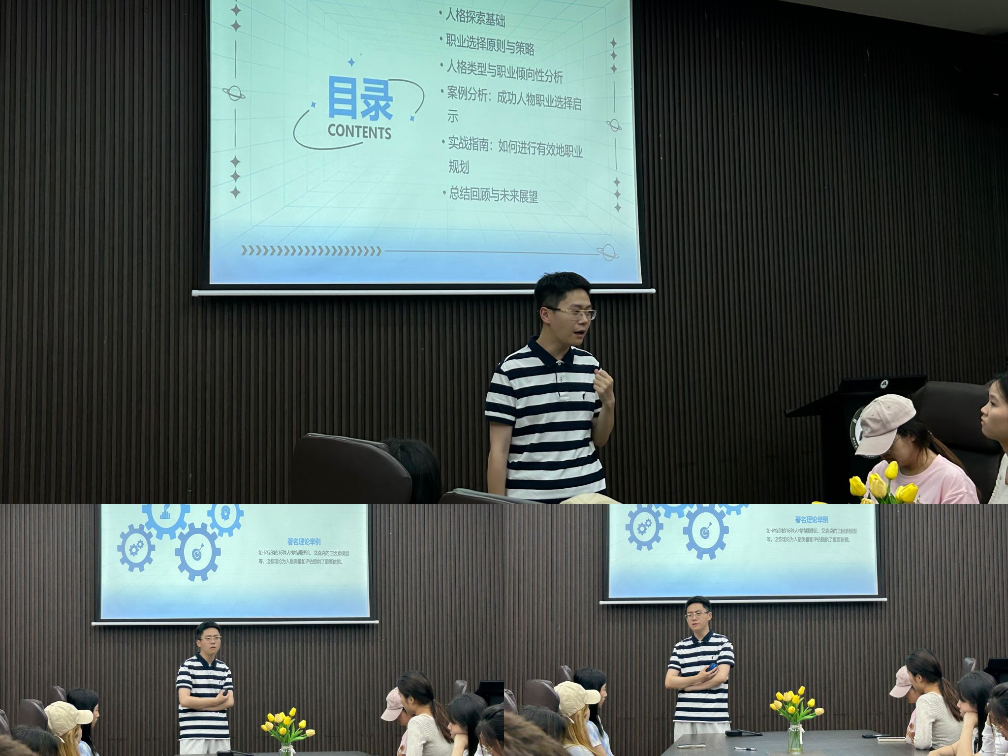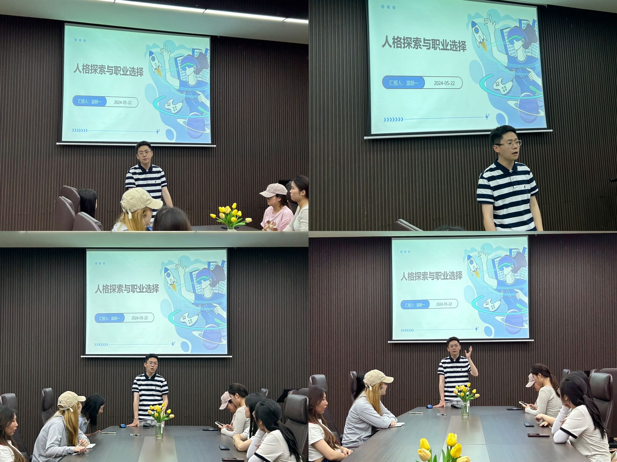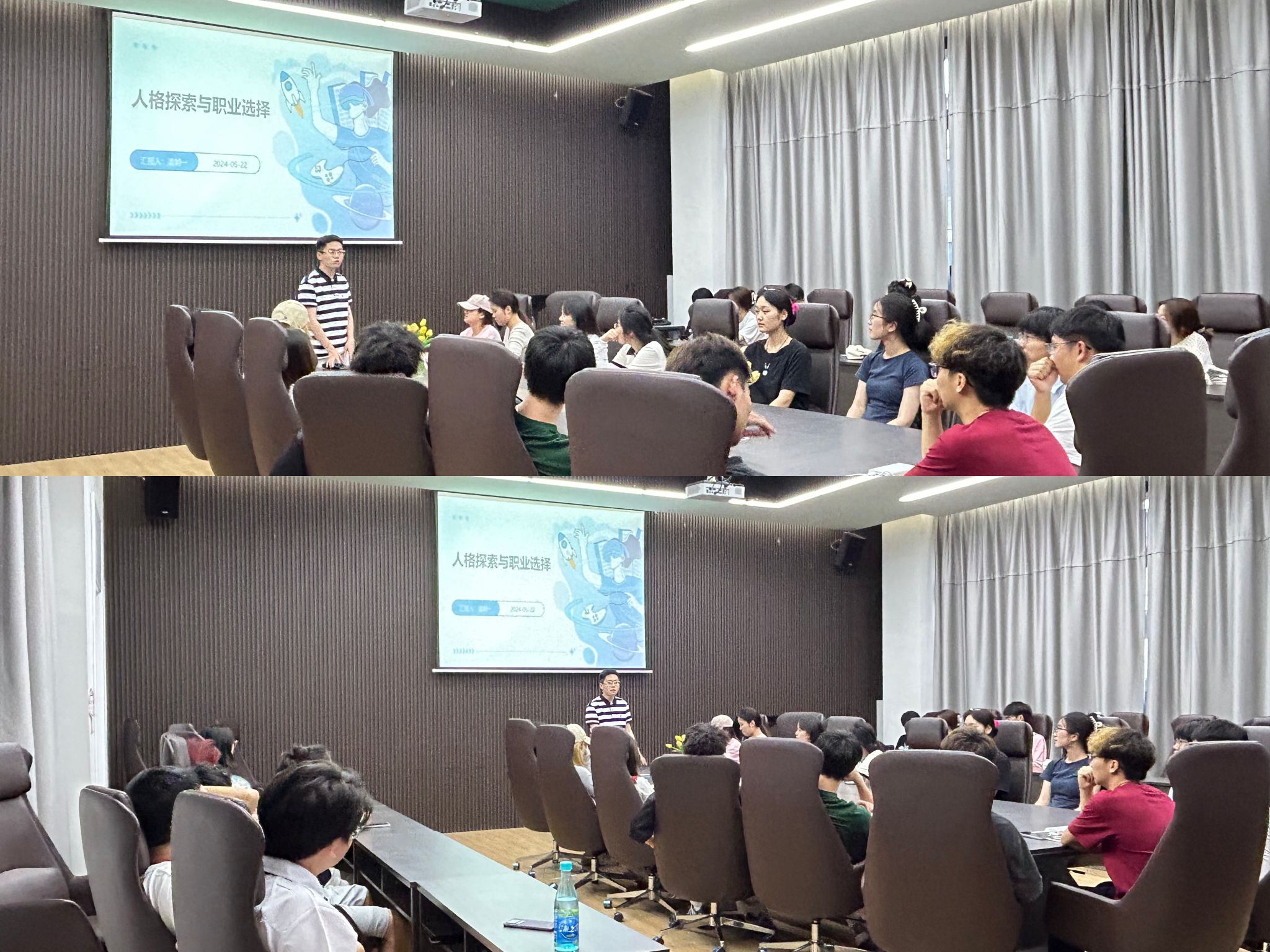 本次活动由温朝一老师主讲,和班团就职业探索和规划问题之间进行了深度的交流,人格探索的过程不仅是个体自我认知的深化,也是职业规划的重要基础。在人格探索的过程中,个体需要关注自己的性格、兴趣、价值观以及能力等方面,从而全面了解自己的内心世界。同时,也需要关注市场需求和行业发展趋势,以便将个人优势与社会需求相结合,实现职业发展的最大化。
