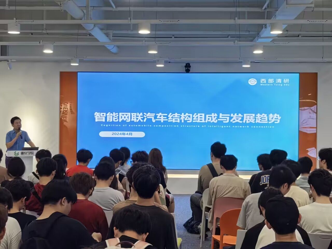 接下来企业相关负责人开展了智能网联汽车方面的知识讲座。介绍了我国的智能网联汽车的发展,并表明如今智能网联汽车已经成为发展的支柱产业之一,位于行业的风口浪尖。通过建立中国方案的智能网联汽车信息物理系统架构,充分融合智能化与网联化发展特色,以五大平台为载体,实现 “车-路-云”一体化的智能网联汽车系统。同时负责人指出,如今社会发展迅速,单凭一方面的知识是无法做到很多技术的实现,同学们应加强专业知识学习,也要扩展知识面,成为全面性人才,讲座在同学们的掌声中结束。