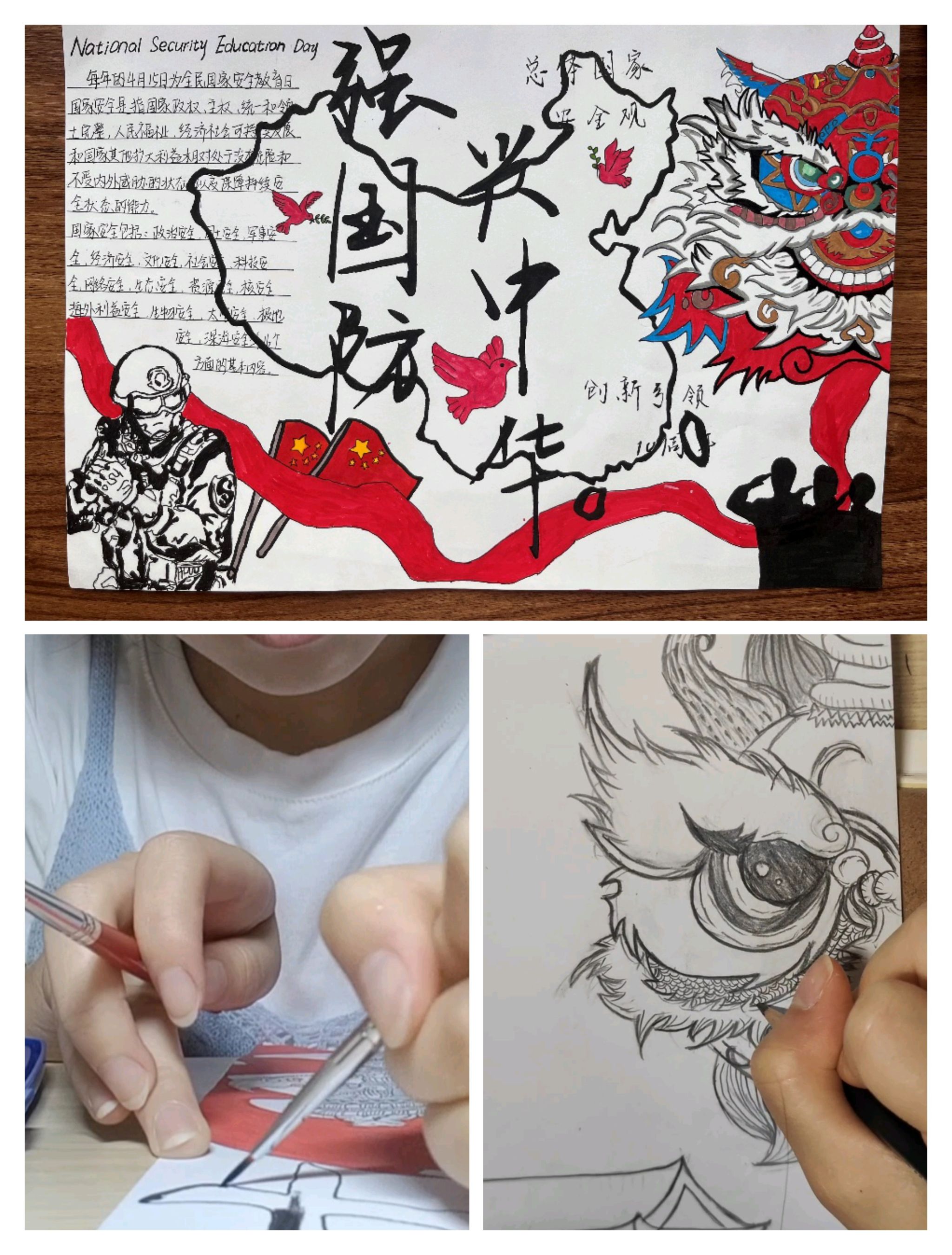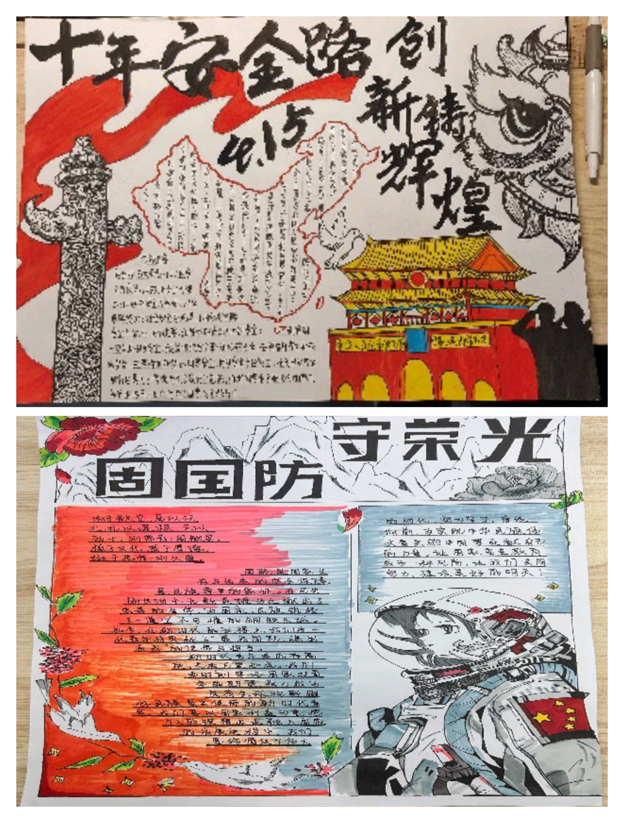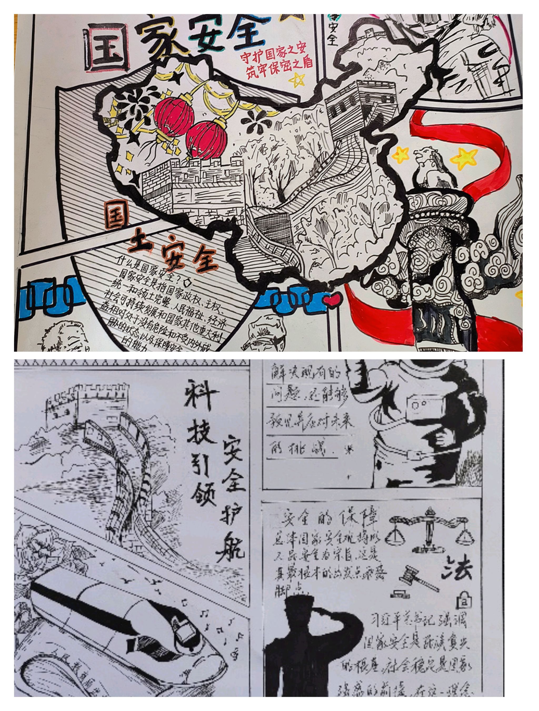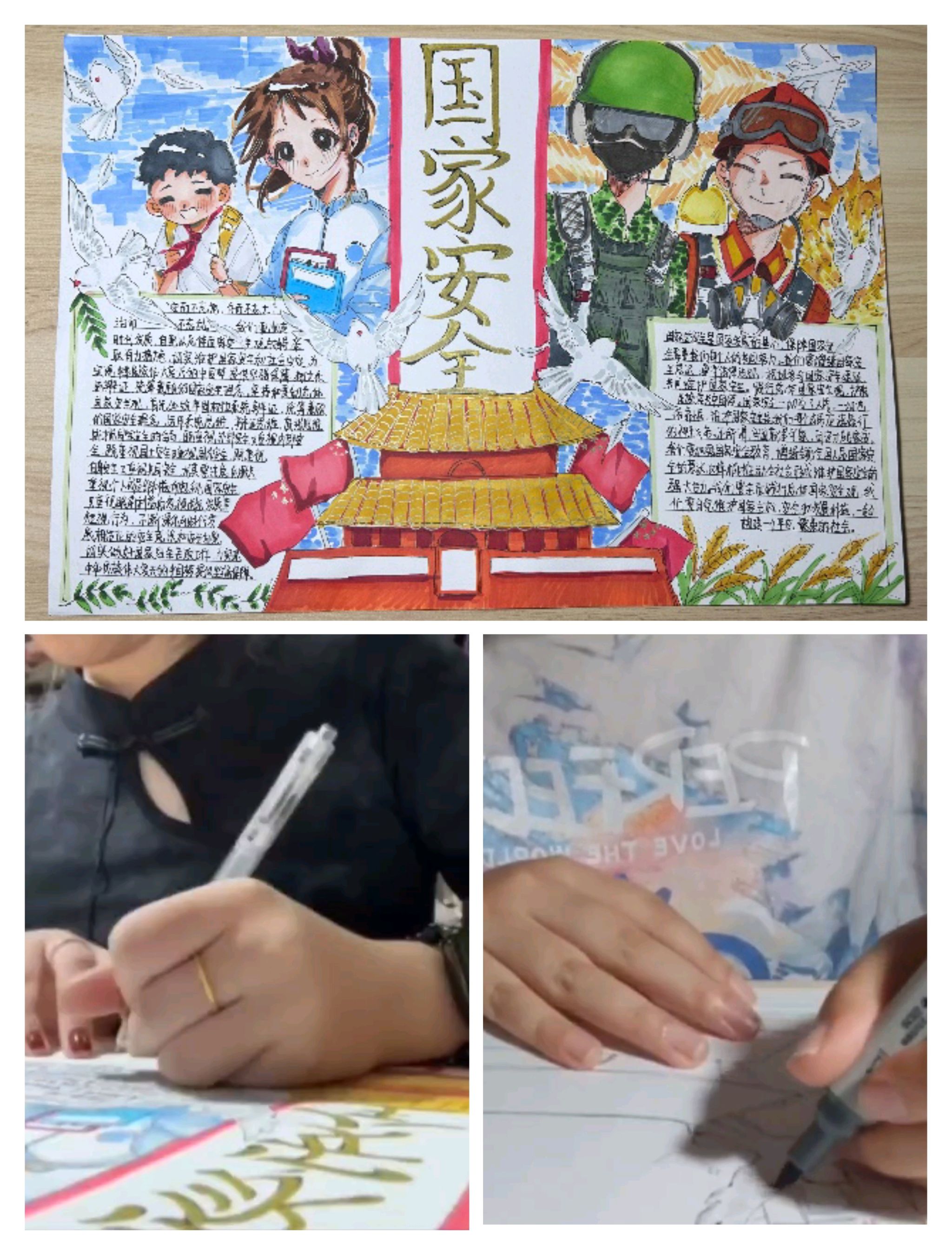 海报制作完成后,同学们纷纷将自己的手抄报作品和创意视频提交至贤者楼314办公室。这些作品不仅色彩鲜艳、设计精美,而且内容丰富、寓意深刻。每一件作品都凝聚了同学们的智慧和心血,他们用独特的视角和创意表达了对国家安全观的理解和认识。