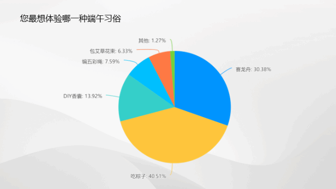 同时,超过半数的人想要体验赛龙舟和品尝粽子,这充分展现了传统端午习俗在现代社会中的深远影响和人们对其的热爱。在口味偏好上,红豆粽和鲜肉粽备受欢迎,展示出大家对于经典与创新的共同追求。而五谷杂粮粽和蜜枣粽也赢得了超过30%的支持,体现了健康与甜蜜的双重口味趋势。粽子,不仅是味蕾的享受,更是文化的传承,每一口都充满了历史的厚重与温情。