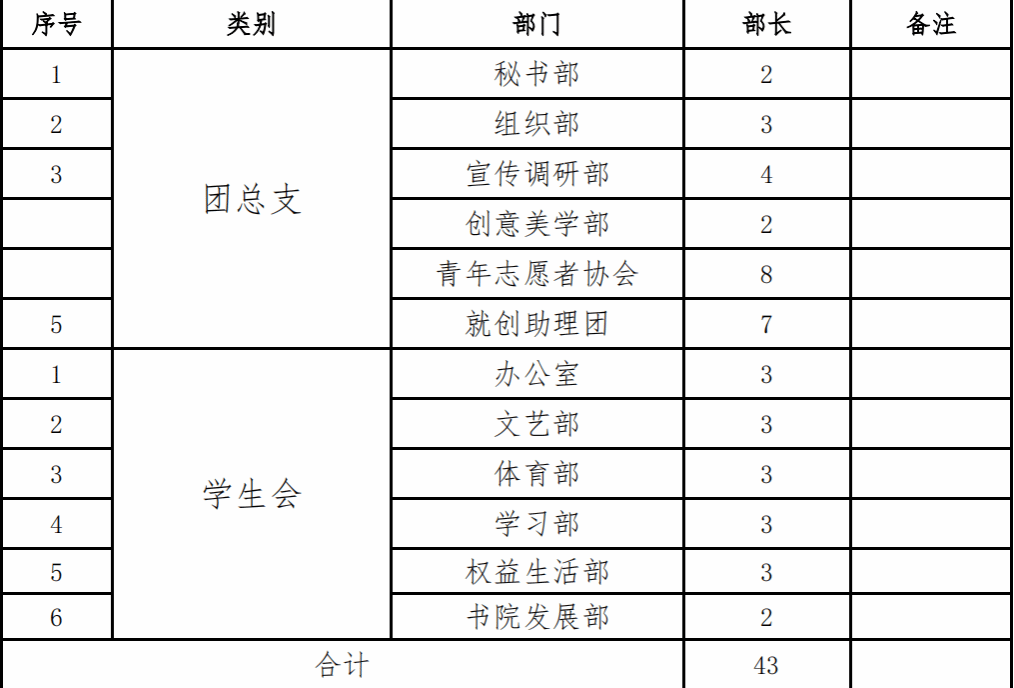 3.面试方式:包含演讲和答辩等程序。演讲包括简短的自我介绍、工作想法、部门发展,干部干事培养等方面;领导小组提问面试者进行回答,根据演讲和答辩的情况进行评分。最终综合竞聘人员情况确定学生副书记/执行主席候选人名单并公示。