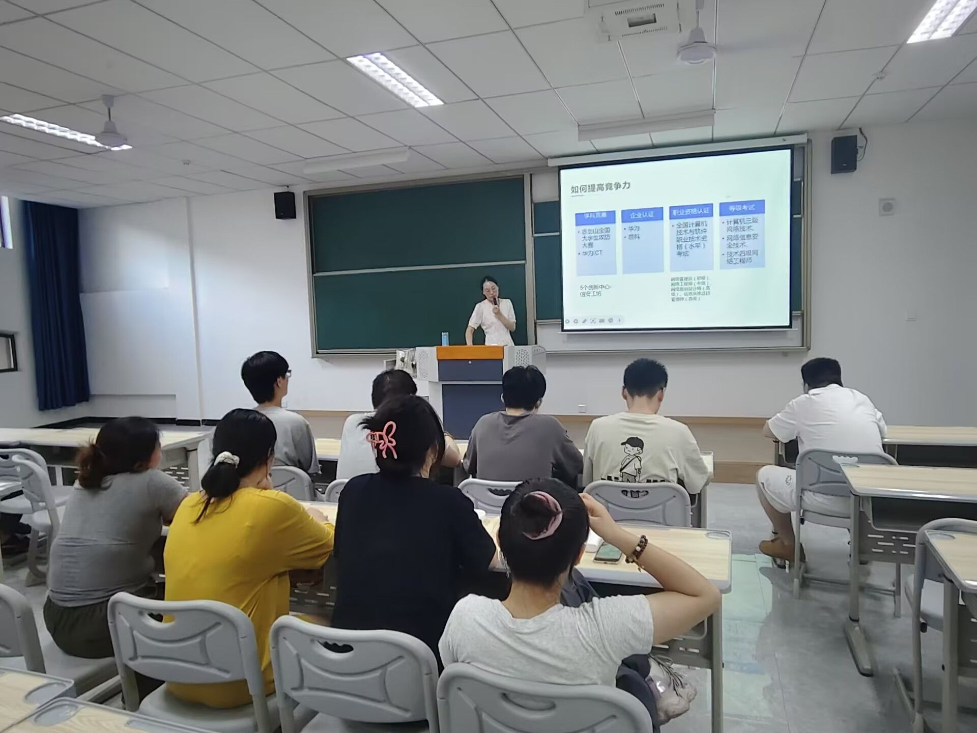 莅临本次专业解读会的主讲老师有:余洋老师、严杨志老师、郑慧娟老师、谢志洪老师、赵星月老师、刘强老师、黄兴老师和王燚老师,以及创新中心战队的老师有:张润老师、徐国栋老师、姜丰老师、王浩老师和李晨曦老师。本次解读会根据专业和班级被细分为10场活动,每场活动均配备了一名专业解读的主讲老师以及一名负责创新中心战队介绍的老师。