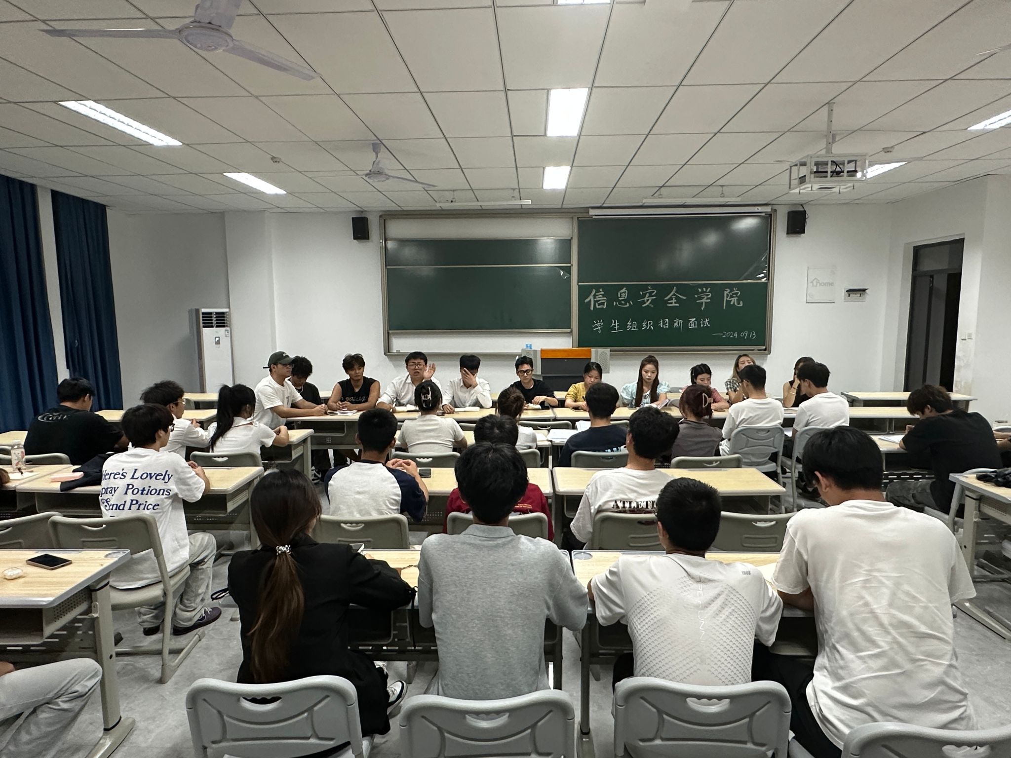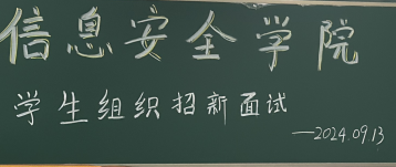 2024年9月13日,信息安全学院迎来了第三届学生组织招新活动的璀璨时刻。正午12时,伴随着悠扬的钟声,贤者楼410与411室双门齐开,一场关于梦想与能力的盛大面试在此拉开帷幕。