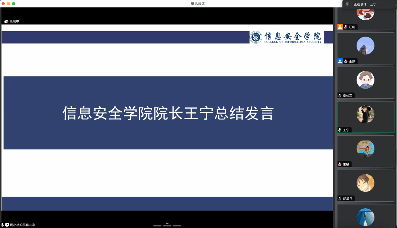 会议最后,王宁院长对本次大会进行总结。王宁院长再次强调了线上教学工作要求,并对学院后续工作进行了统筹安排。同时,也对各位教师寄予了厚望。她指出,在日常工作中,老师们对内要凝聚共识,团结一致,形成一股坚不可摧的合力;对外要锐意进取,积极展现,树立学院蓬勃向上的良好形象。希望各位老师能在自己岗位上充分发挥个人才能,为推动学院发展贡献自己的力量。