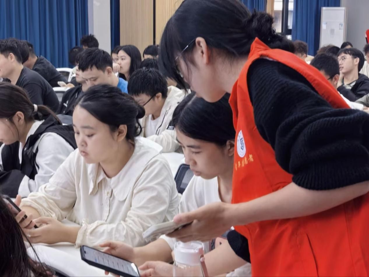 在活动开始之前,工作人员做了充足的准备,以饱满的热情,迎接2024级的班长、团支书和志愿实践委员。随着同学们陆陆续续抵达报告厅,工作人员引导同学们有序签到,并在相应的位置就坐,等待着活动的开始。