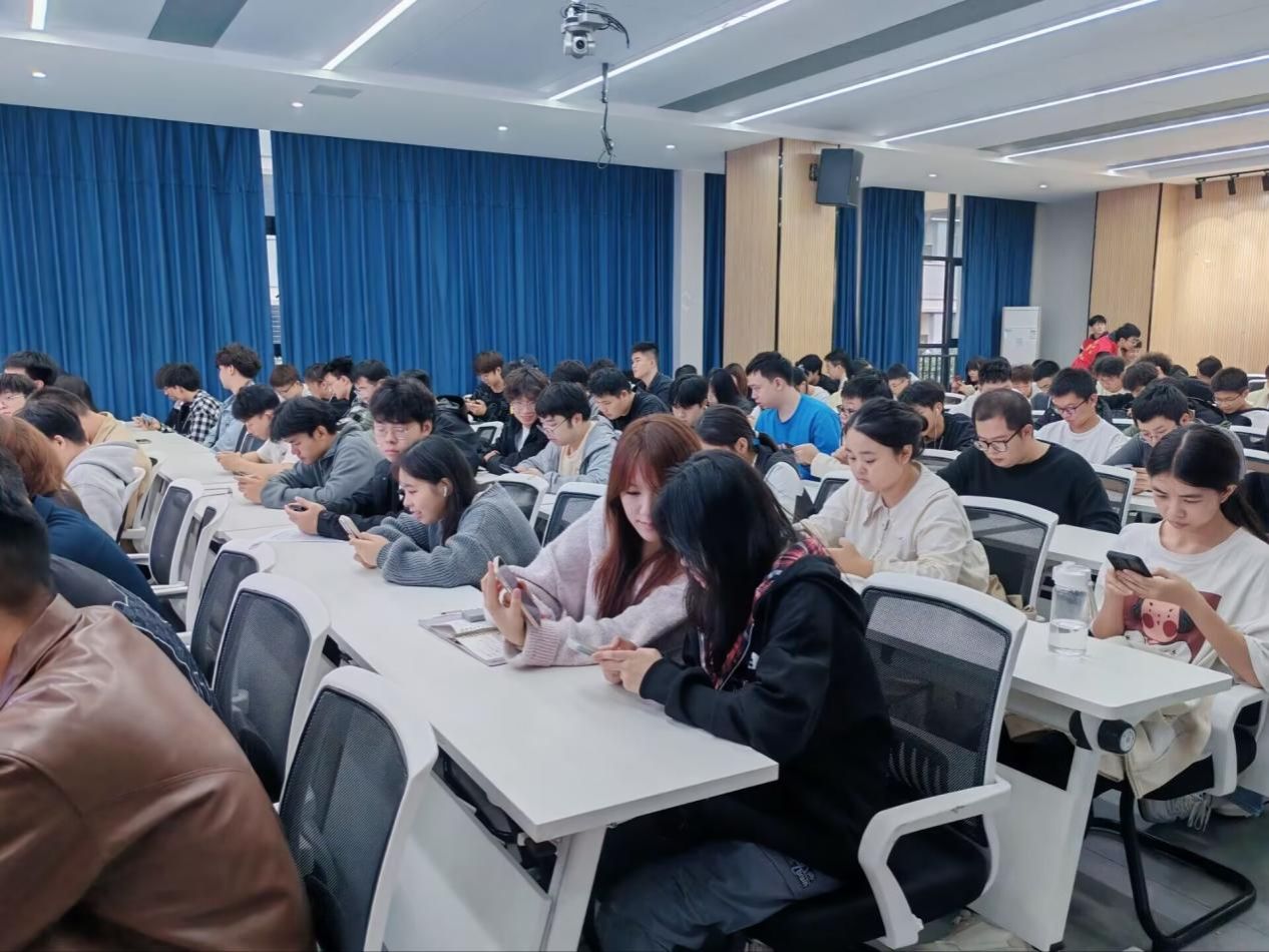 完成理论知识的学习,接下来便是同学们的实操时间。随着讲台上主讲人讲解结束,台下的同学们拿出手机,按照PPT上的步骤打开志愿山城平台进行注册。工作人员也时刻关注着同学们,为同学们解答使用平台时所遇到的一切突发状况。多功能室内充斥着互帮互助的和谐氛围。