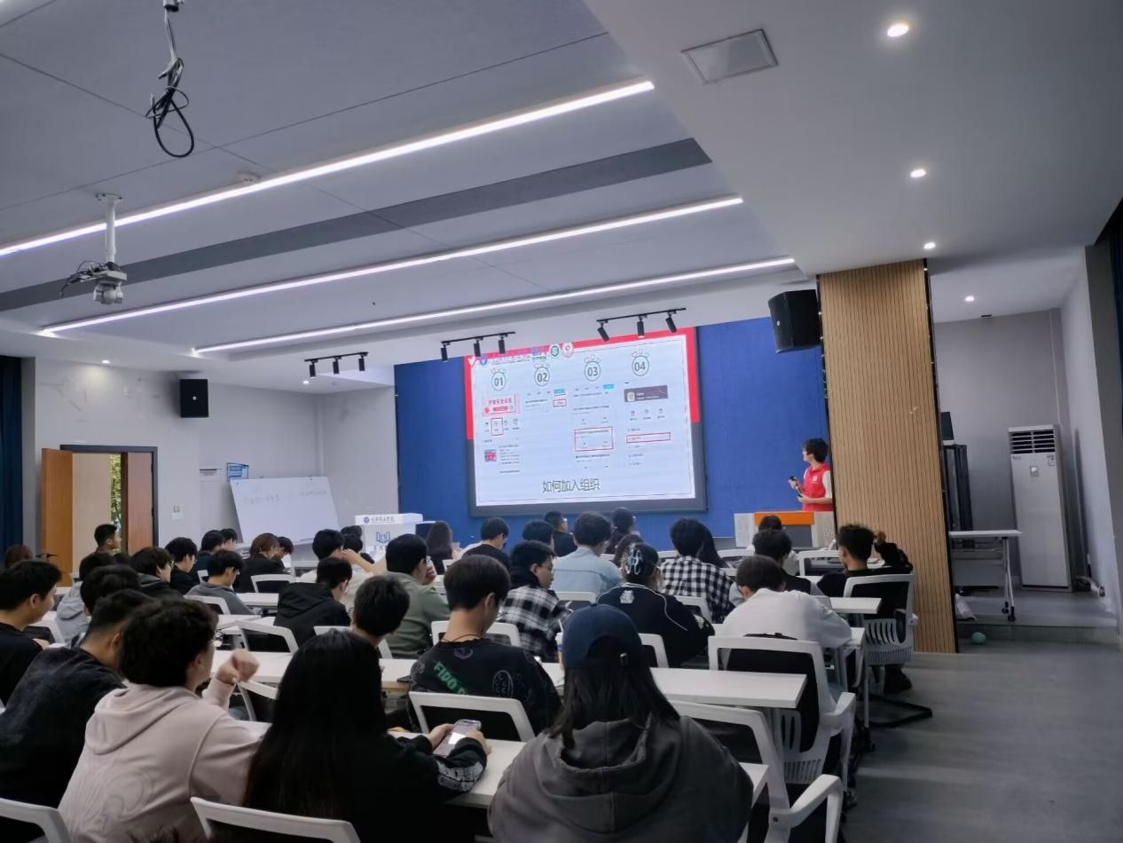 随着主讲人周天豪走上讲台,培训活动正式开始。主讲人翻过一页又一页的PPT,细致地为台下的同学们讲解如何注册志愿山城,成功注册后又当如何加入组织,并进行平台搜索、签到以及签退活动等操作。此外,主讲人还热情的与同学们分享志愿服务的经验,传递志愿服务的理念价值。台下的同学们聚精会神的听着,时而埋头做笔记,时而抬头倾听讲解,脸上满是对志愿服务的向往,不愿错过任何关键信息。