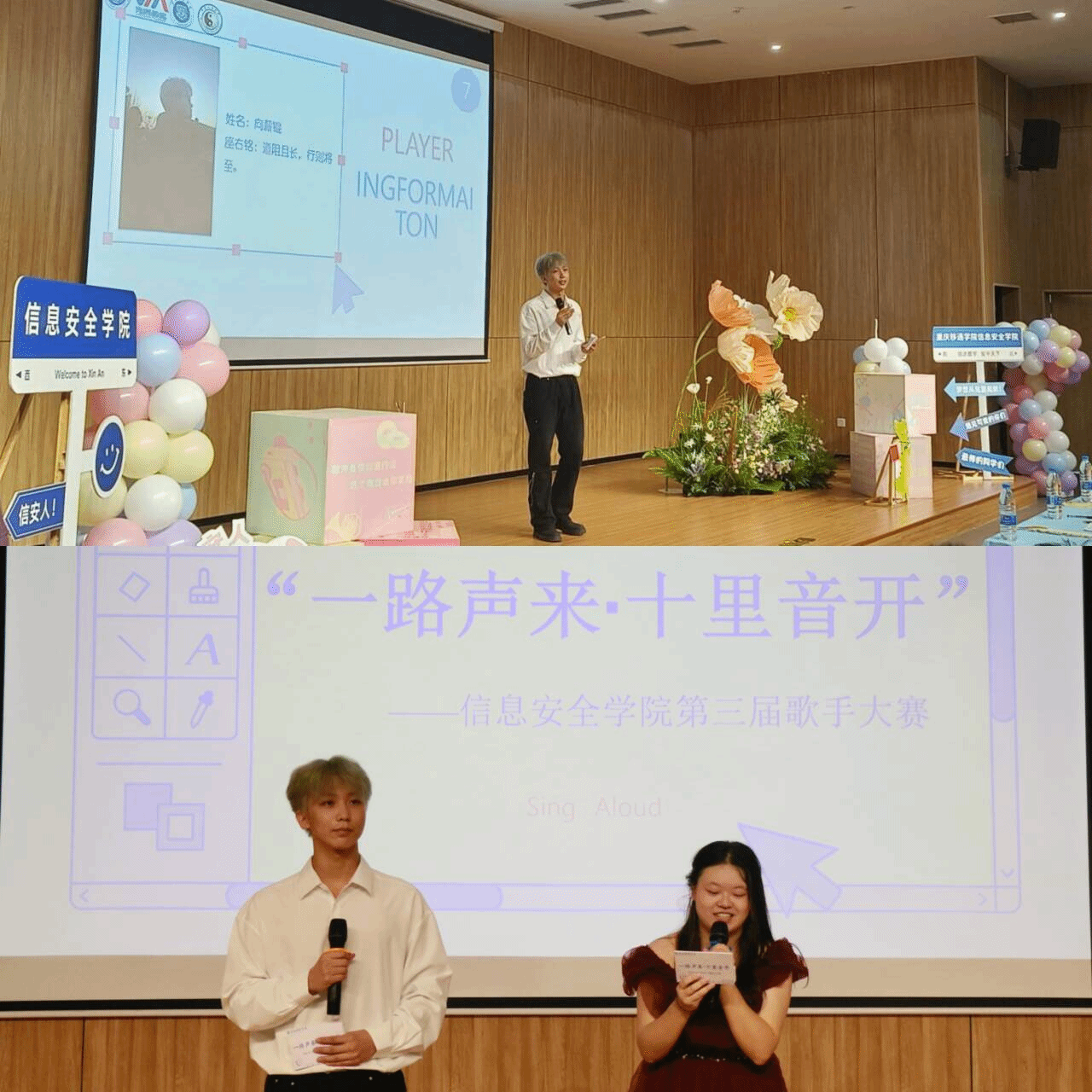 秋风轻拂,带来无尽的思念,而音乐,正是这秋风中的诗歌。当悠扬的旋律在校园的每个角落回响,一场音乐的盛宴就此拉开序幕。2024年10月2日下午14点,由信息安全学院文艺部倾力打造的“一路声来·十里音开”第三届歌手大赛,在万众期待中璀璨启幕!这里,青春的激情与梦想的翅膀齐飞,每一个跳动的音符都承载着学子们对音乐的无限热爱和对未来的美好憧憬。接下来,就让我们一同见证这场音乐盛宴的开启,期待每一位选手的精彩表现,共同寻找那位能够征服全场、荣膺“校园麦霸”称号的音乐之才!