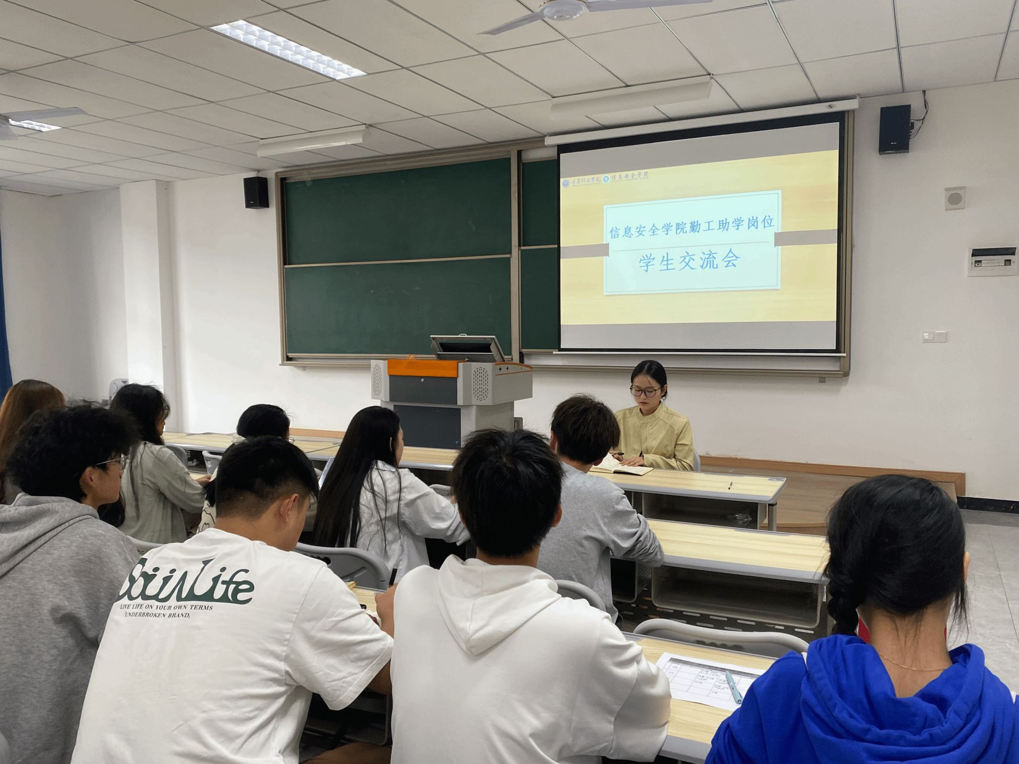 为进一步推动信息安全学院勤工助学工作,发挥勤工助学的育人功能,2024年10月9日下午4点, 信息安全学院在贤者楼313举办了勤工助学岗位学生交流会,会议由李阳老师主持。此次交流会给学生提供一个了平台,分享在勤工助学过程中的宝贵经验、心得与感悟,共同探讨如何更好地平衡学习与岗位工作。