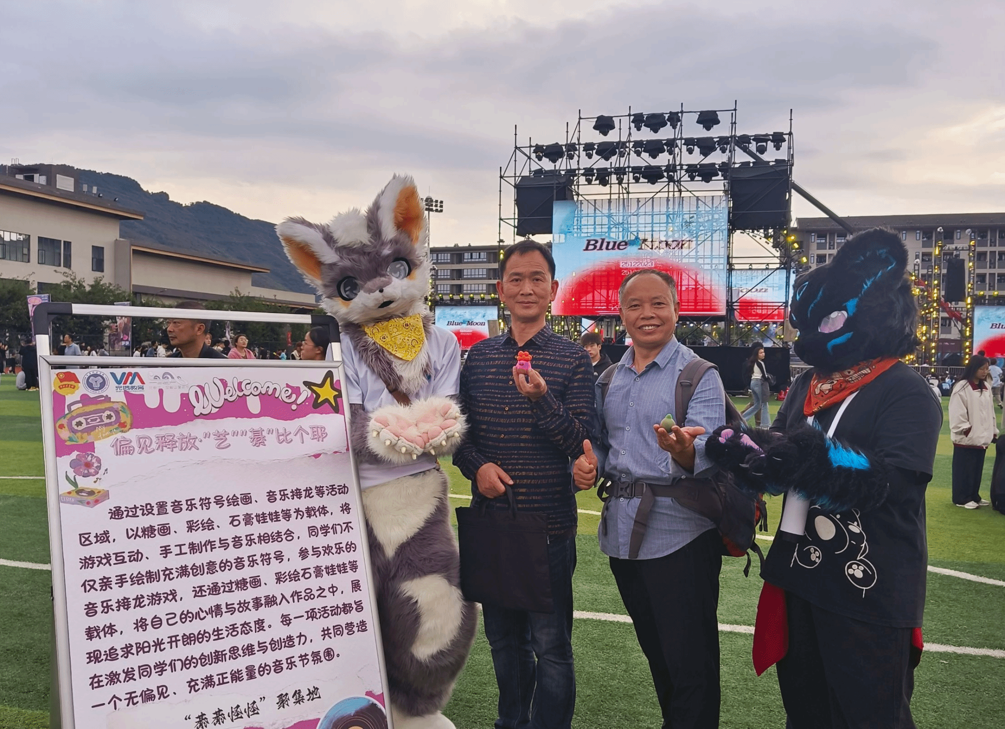 本次“大学城·古剑山音乐节”外围活动展现了丰富多彩的内容,特别是音乐符号作品展,不仅展示了音乐与艺术的完美融合,还让参与者在欣赏动听旋律的同时,深入体验艺术的独特魅力。此外,音乐接歌游戏尤为受欢迎,吸引了众多参与者积极加入。在这个游戏中,参与者不仅有机会赢取小奖品,更重要的是享受到了游戏本身带来的欢乐与刺激,增强了音乐节的互动性和娱乐性。