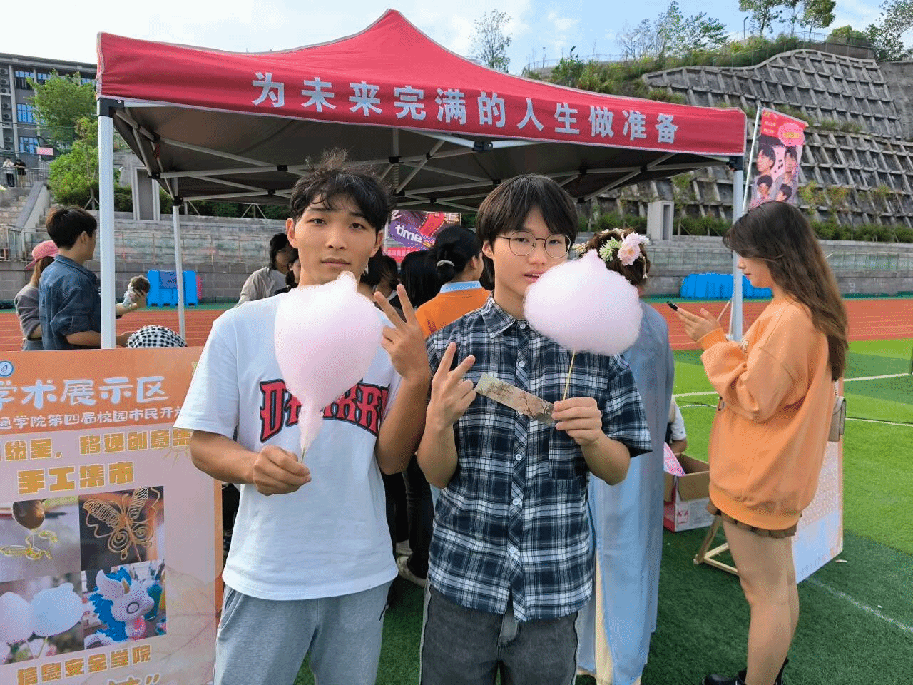 为打破校园与社会的界限,让市民与师生近距离互动,共同体验文化的魅力与创新的乐趣。2024年10月19日“綦”彩纷呈,移通创意集市活动在信安文艺部组织的配合下成功举办。此活动旨在展示学生们在彩绘、捏轻粘土、制作棉花糖等多个创意工艺方面的才华,不仅让参与者亲身体验到文化的魅力和创意的无限可能,还促进了校园与社会的和谐共融。