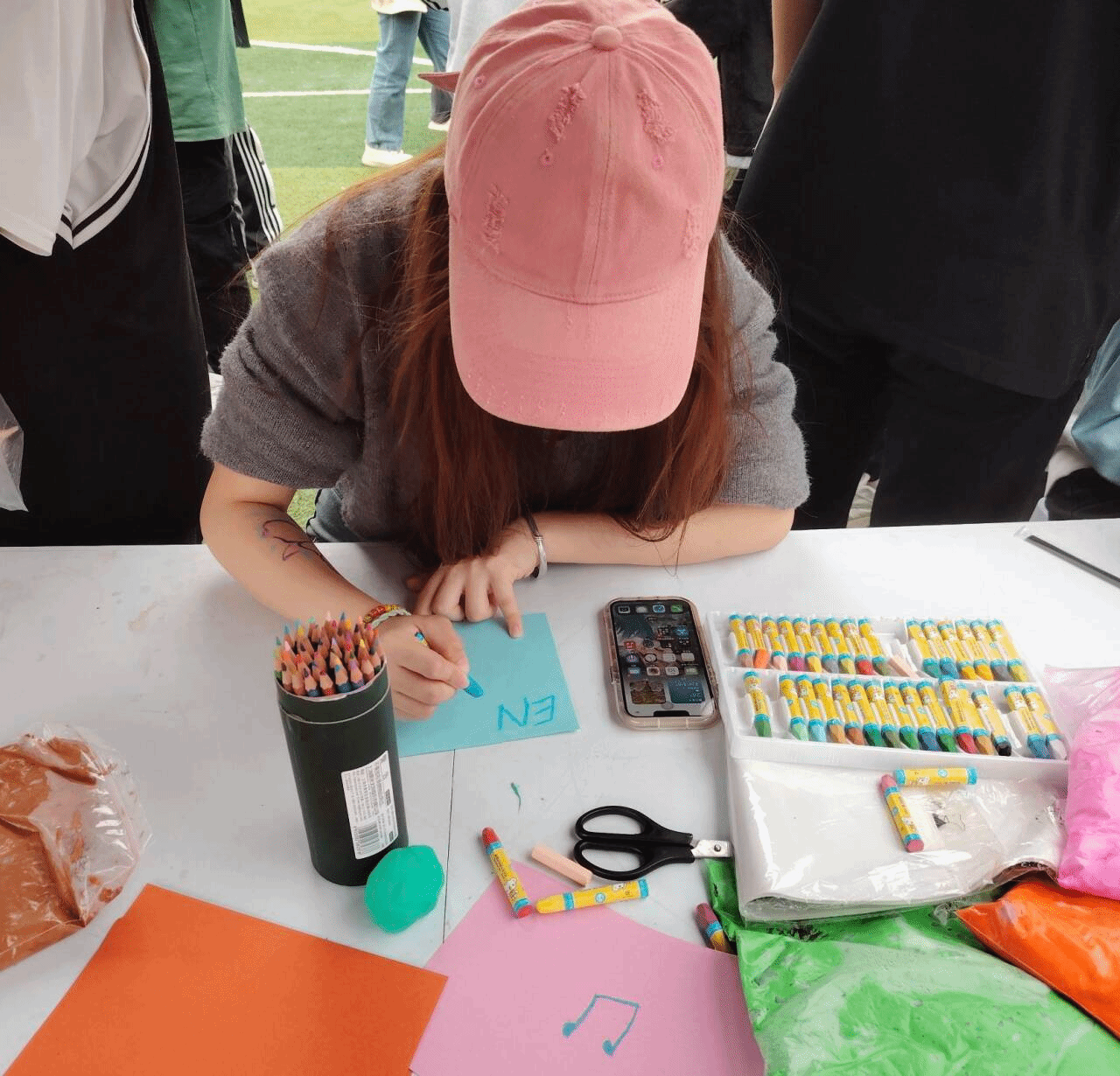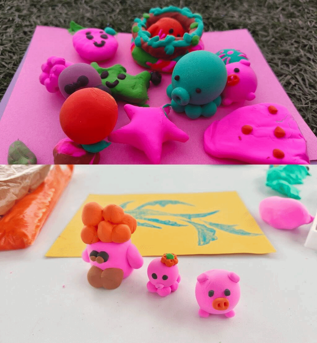 走进捏轻粘土活动区域,学生们围坐在工作台旁,他们或低头专注地捏制着手中的轻黏土,或兴奋地交流着彼此的创意和想法。在这场活动中,每个人的脸上都洋溢着满足和快乐的笑容,仿佛在这个小小的空间里,他们找到了释放压力和展现自我创造力的方式。