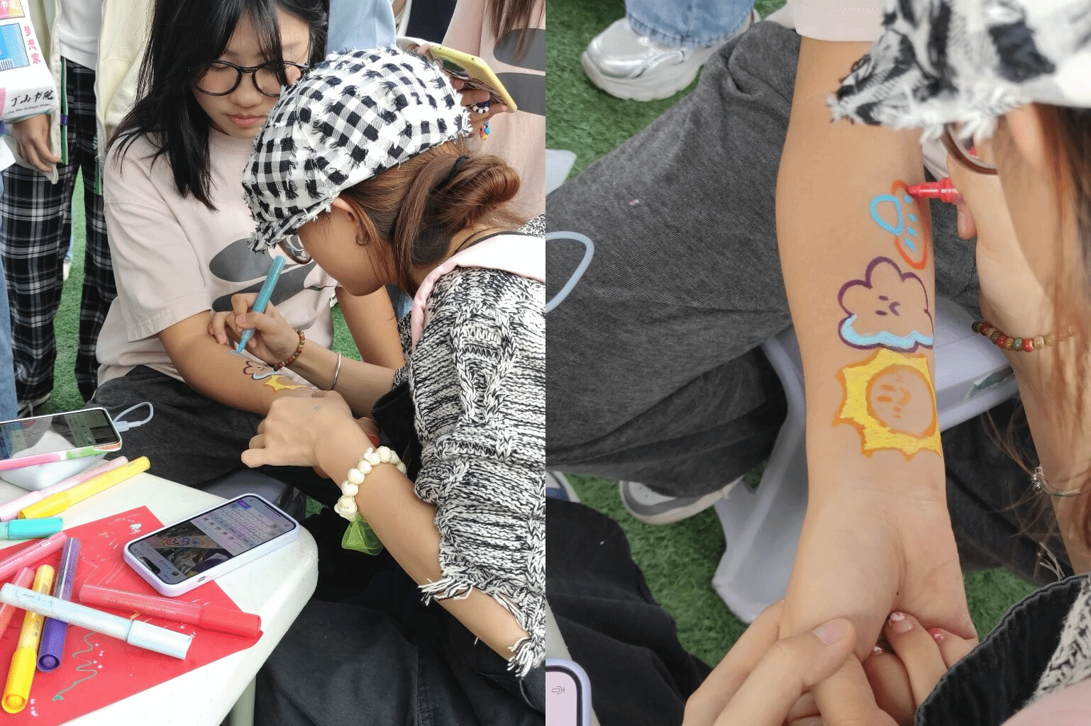 彩绘活动也同样热情高涨。参与者们手持画笔,全神贯注地在自己或他人的手臂上描绘出各种美好的图案和愿景。这一过程中,每个人都沉浸在自己的创作中,通过色彩和线条表达内心的想法和情感。随着画笔的移动,一幅幅生动有趣的彩绘作品逐渐呈现出来,这些作品不仅为集市增添了一抹亮丽的色彩,更成为了参与者们珍贵的记忆,记录着他们在这一天的欢乐与创造。