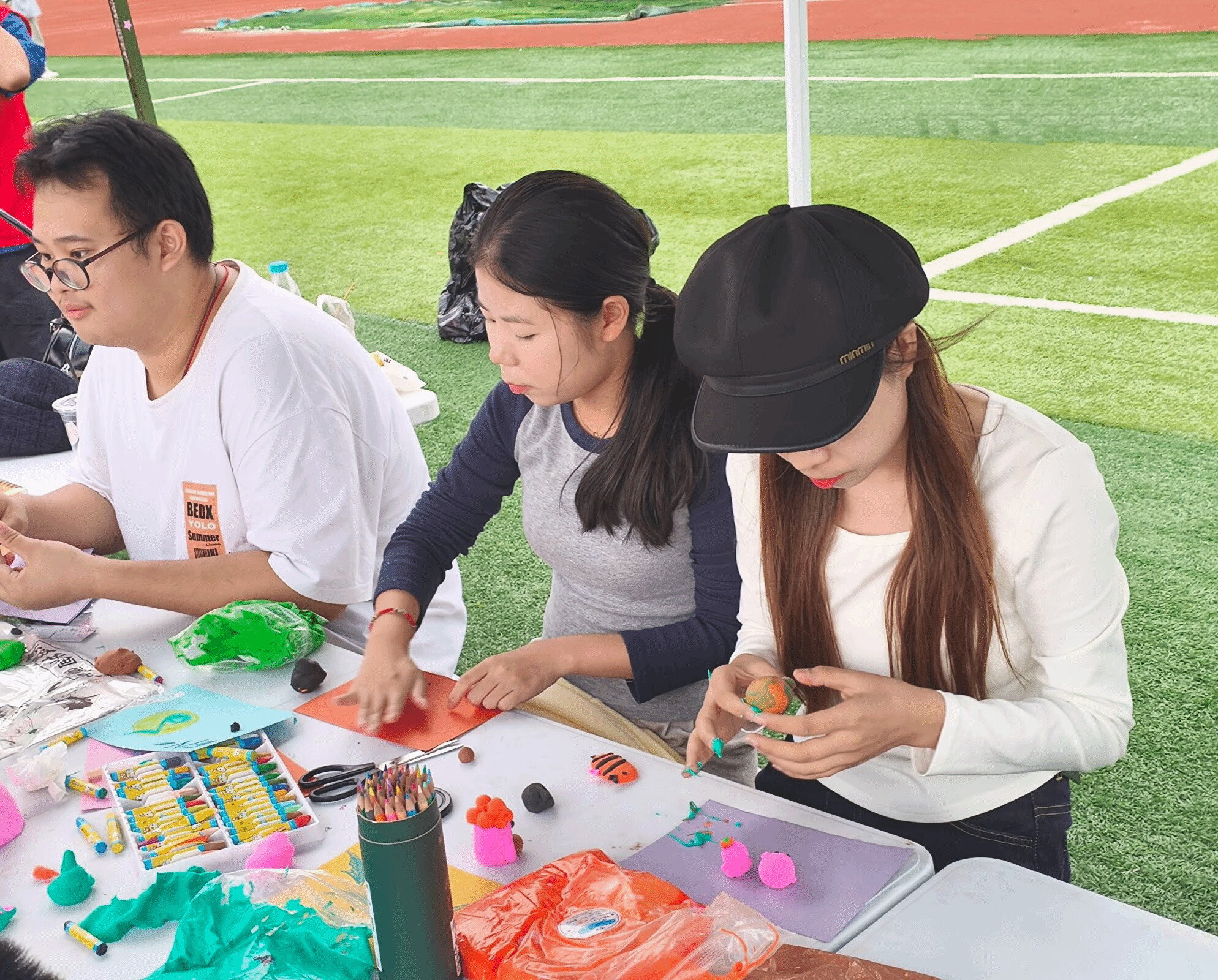 为了提高此次活动的趣味性和互动性,学院精心设计了一系列有趣的小活动,涵盖了彩绘、捏轻粘土、制作棉花糖等多种手工艺,以满足不同年龄段和不同兴趣爱好参与者的需求。活动伊始,人潮涌动,参与者们热情高涨,在工作人员的有序引导下,参与们已经迫不及待,准备开启一场独属于自己的奇幻DIY之旅。