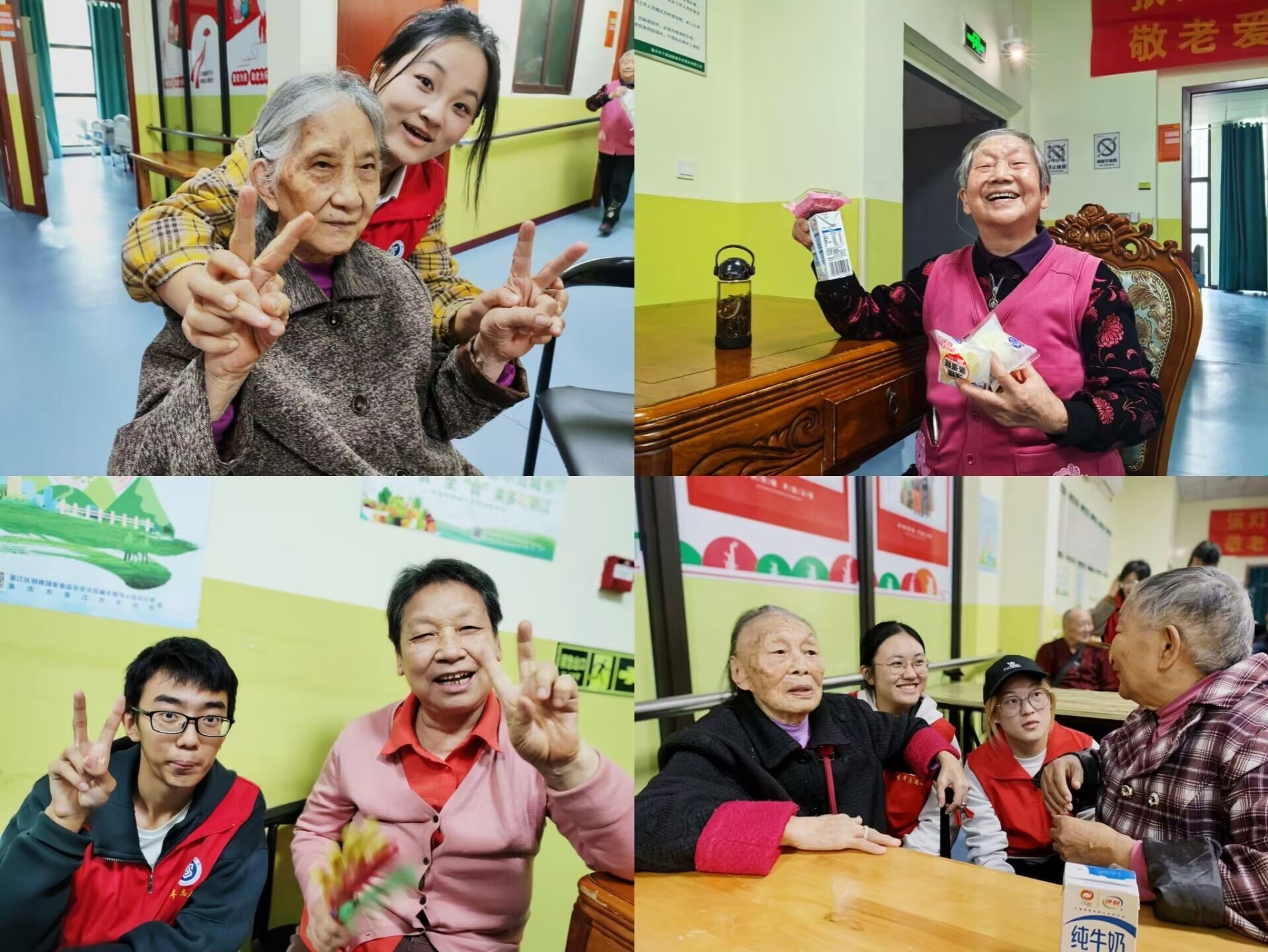 在所有环节结束后志愿者对老人们的居住环境进行打扫复原并为老人们带去美好的祝福。老人们也表示今天过得十分欢乐,希望能经常来看望他们。快乐的时光总是短暂的,在经过最后的合影留恋后志愿者就要踏上归途了。