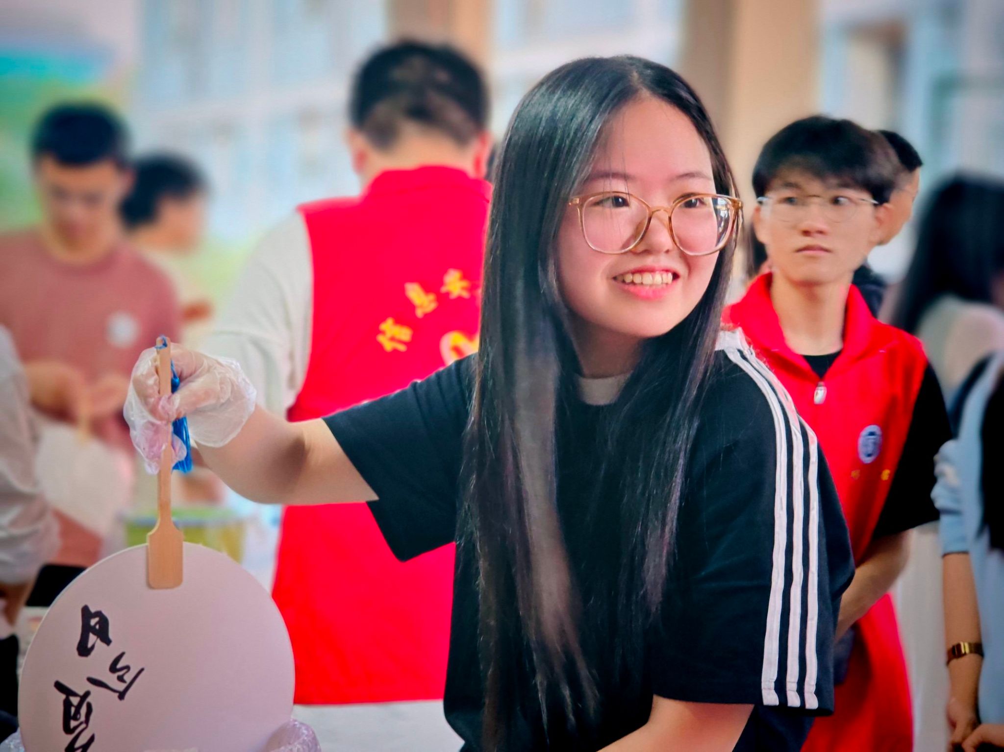 随着扇面成型并干透,活动渐入尾声。志愿者邀请各位参与者进行作品分享。她们用双手捧起漆扇,仿佛托起了千年的历史文化,脸上的骄傲与自信来自厚重的文化积淀。志愿者接过她们手中的漆扇,作为大家“爱”的传递者。将手中精美的漆扇转送给兢兢业业的老师、默默付出的宿管、恪守职责的安保人员等伟大而又平凡的奉献者。在这一秒,镜头定格,记录下美好的一瞬。