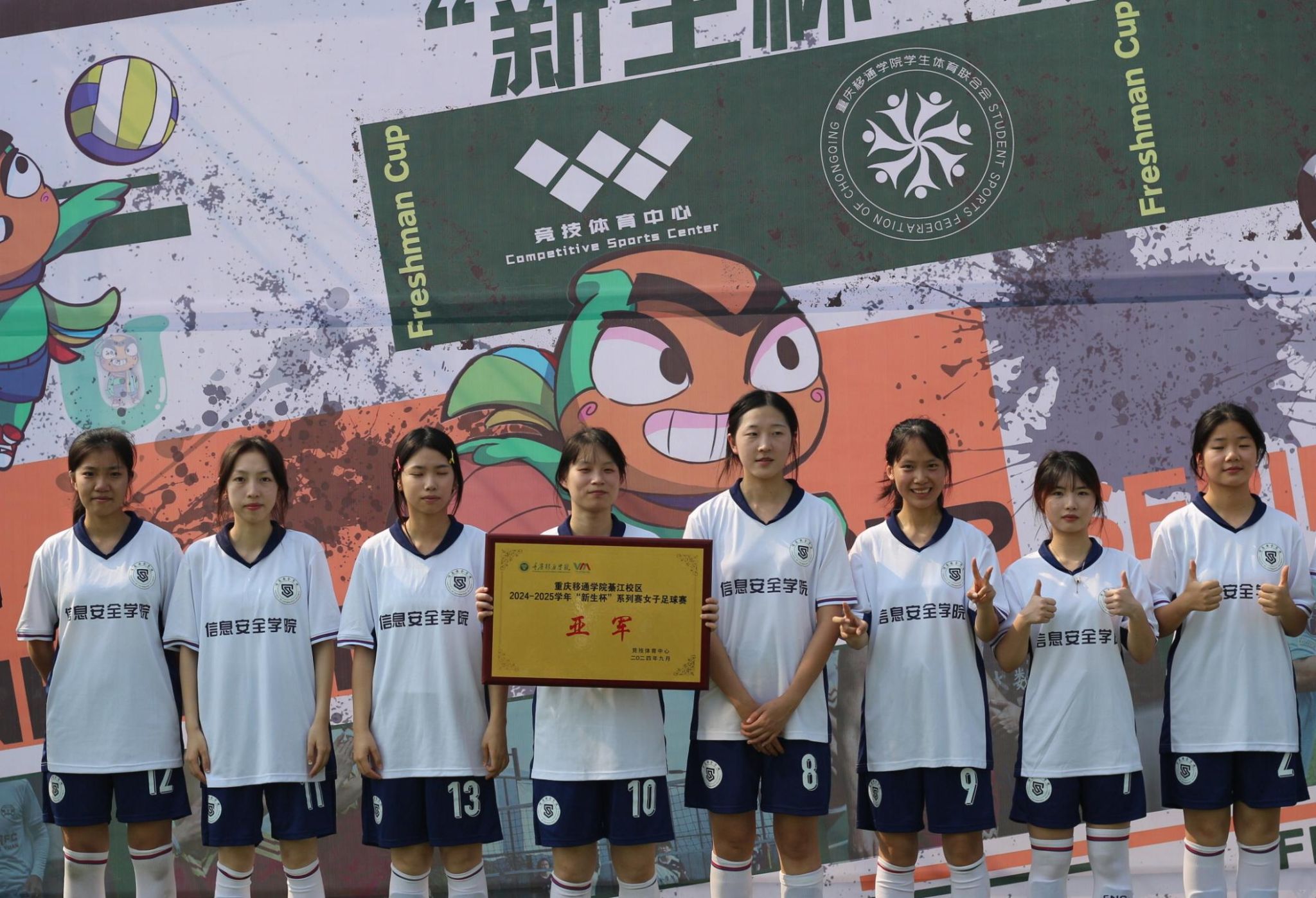 在这个秋高气爽的十月,新生杯系列赛事女足决赛的热浪席卷了校足球场。10月30日12:30信安女足与大健康女足展开了一场火星撞地球般的较量,这场热血沸腾的巅峰之战,最终以信安女足的微弱惜败落幕,她们以英勇的姿态赢得了亚军的荣耀。虽然冠军奖杯擦肩而过,但她们那股子不服输的劲头和满满的战斗精神,赢得了满堂喝彩,她们就是绿茵场上的女战士,真正的英雄!说实话还得是信安女足。