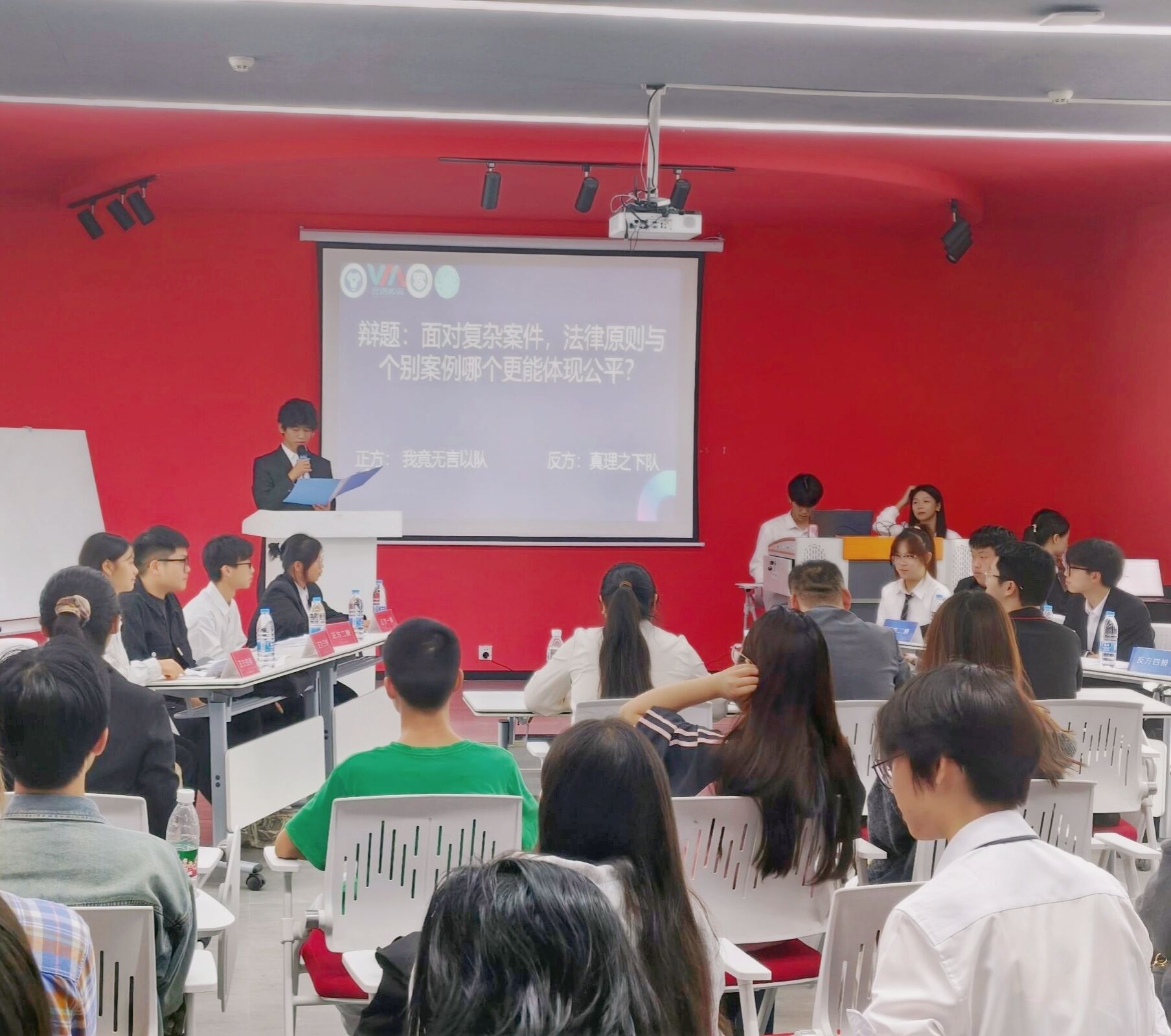 正方代表队“我竟无言以”队坚持个别案例更能体现公平的观点,并引用了多个案例,指出普遍性的规则可能无法完全适应个别案例的特殊性,这时候就需要通过关注和处理个别案例来确保公平;反方代表队“真理之下”队则提出法律原则更能体现公平的观点,他们指出,法律原则具有普遍适用性,能够确保法律在面对新情况、新问题时仍然能够保持公平正义。
