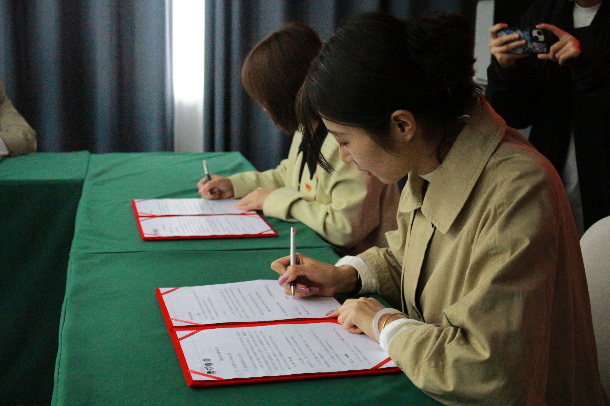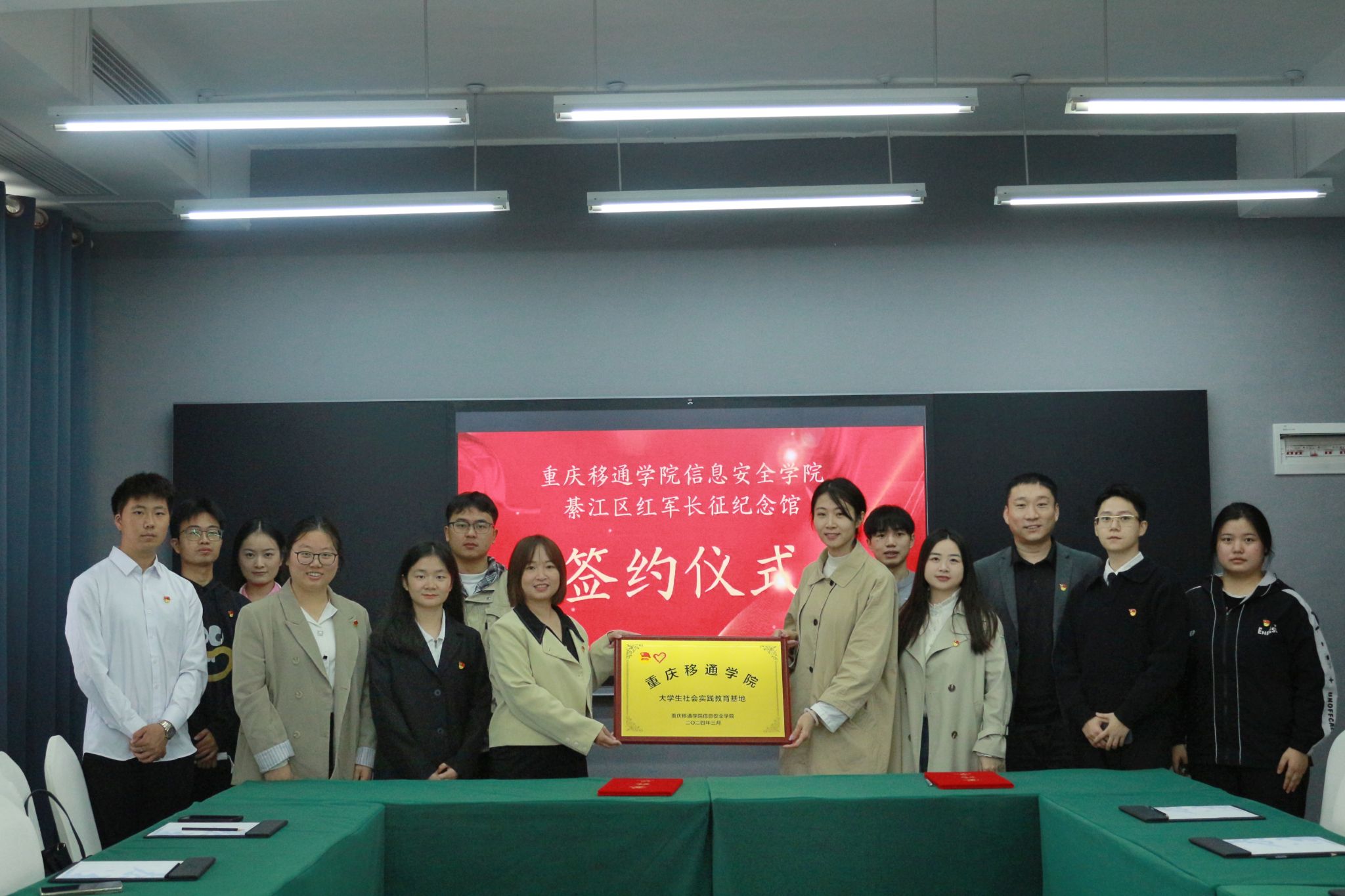 车队继续前行,抵达了红军长征纪念馆。刚进入纪念馆大门,一股浓厚的历史气息便扑面而来。在纪念馆工作人员的悉心引领下,师生党员步入会议室,共同见证了学院与綦江区红军长征纪念馆阵地签约仪式的举行。仪式由学院团总支书记温朝一同志主持,他首先向与会嘉宾致以诚挚的欢迎与感谢,介绍了双方到场人员,为仪式的正式开启拉开了序幕。接着,学院学工副院长、学生党支部书记尹金维同志发表了签约致辞。她表达了对本次校馆合作的美好憧憬与坚定信心,强调了红色文化教育对于新时代青年成长的重要作用。随后,红军长征纪念馆代表孙涵老师也发表了致辞,她回顾了红军长征在綦江区的艰辛历程,强调了红色教育对于传承革命精神的重要意义,期待未来同我院一起能开展更多深入的合作与交流。致辞完毕后,双方在合作共建协议书上郑重签字,并由尹金维同志代表学院向綦江区红军长征纪念馆授牌。这一刻,历史与未来在红军长征纪念馆交汇,革命精神与现代教育的深度融合在此得到了生动诠释。