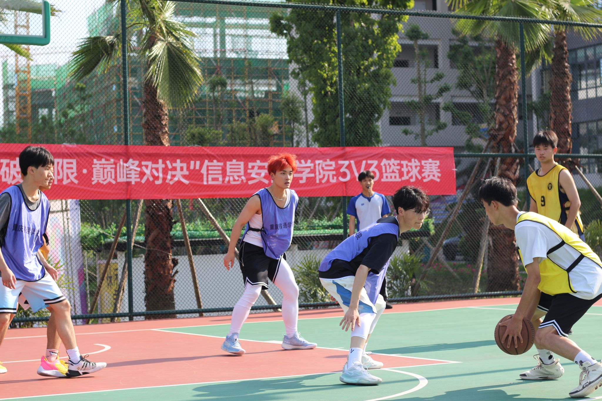 为丰富同学们的课余生活,促进身心健康,增强青年学生的团队合作精神和竞争意识,2024年4月26日16:00,信息安全学院学生会体育部于行者楼前篮球场举办第一期“突破极限·巅峰对决”3V3篮球对抗赛。