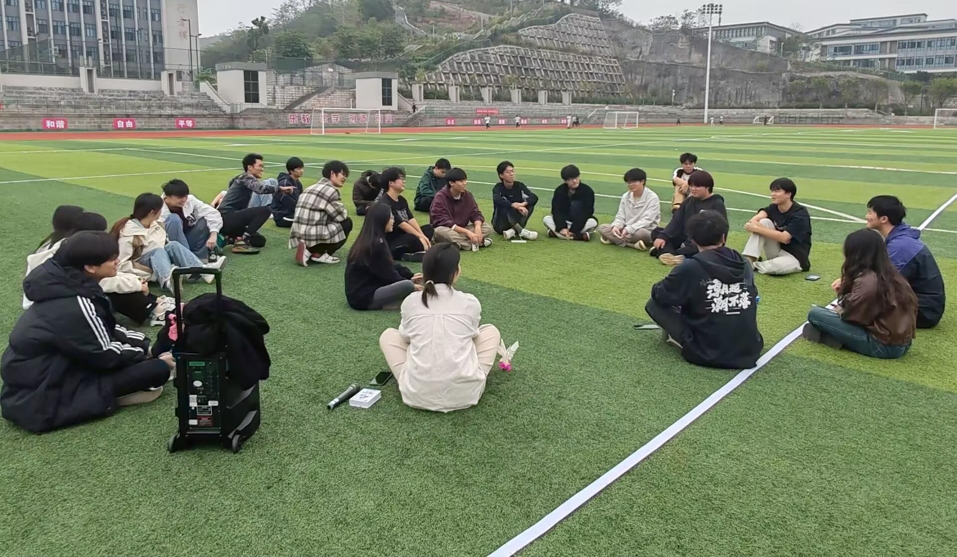 在当今社会,随着教育竞争的日益激烈和生活节奏的加快,同学们不仅需要应对学业上的压力,同时还面对着处理人际关系、自我认知、情绪管理等多方面的问题。为了减轻这些压力和挑战对他们的心理健康产生负面影响,2024年11月15日10:30-11:30在学校的田径场上,2023级软件工程4班举办了本次“人格铸坚韧,心灵绽温柔”心理健康主题班会。