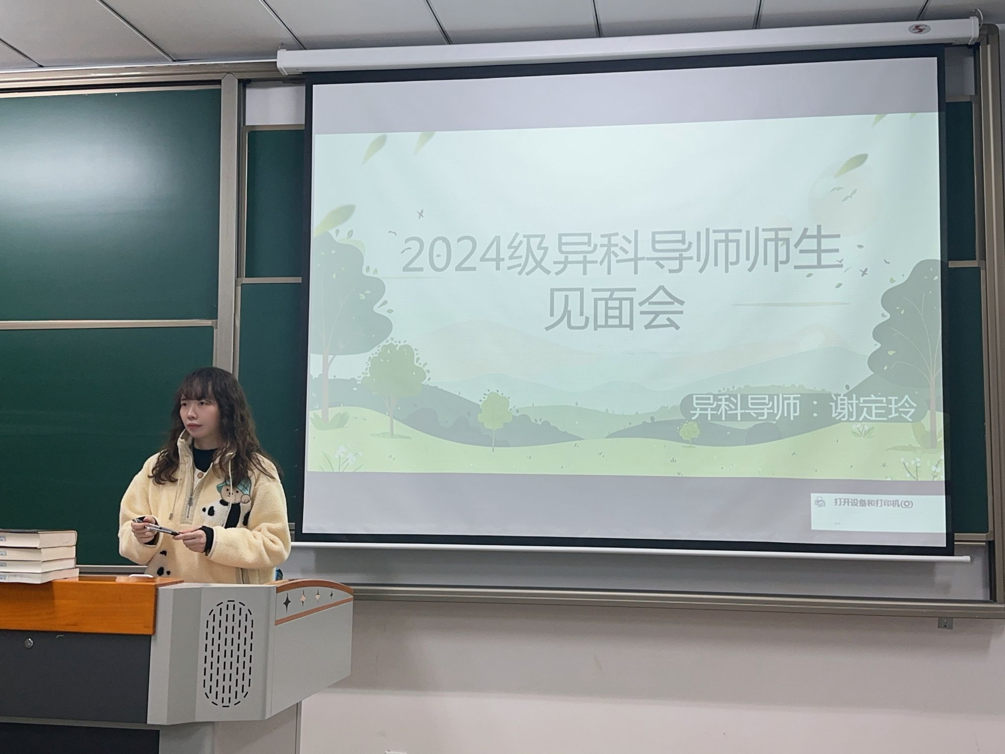 异科导师谢定玲首先向同学们进行了简单的自我介绍,包括自己的专业,背景,工作经验等。其次,谢定玲老师向同学们介绍了异科导师的作用,强调异科导师是学校贯彻“三全育人”理念的生动实践,是多学科交叉融合的创新育人路径,是探索新型师生关系的重要载体。接着她向大家详细介绍了后续将开展的一系列活动,包括大咖阅读,影片赏析,厨艺展示等活动,期待通过多种活动多方面地锻炼学生的思维能力、动手能力、创造力和社会责任感,从而全面提升学生的综合素质和能力水平。