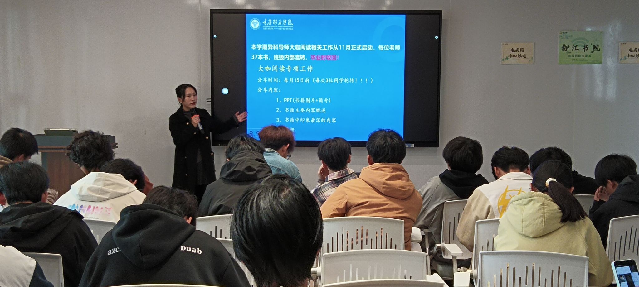 近日,为丰富学生阅读体验,提升综合素质,信息安全学院2024级软件工程1班正式启动了大咖阅读专项工作。此次活动由异科导师吴玉娟主持,活动地点位于南江书院-博学.悦享互动空间,活动目的旨在通过分发和阅读大咖书籍,让学生们深入了解科技领袖和商界精英的成功之道,激发他们的创新思维和创业热情。