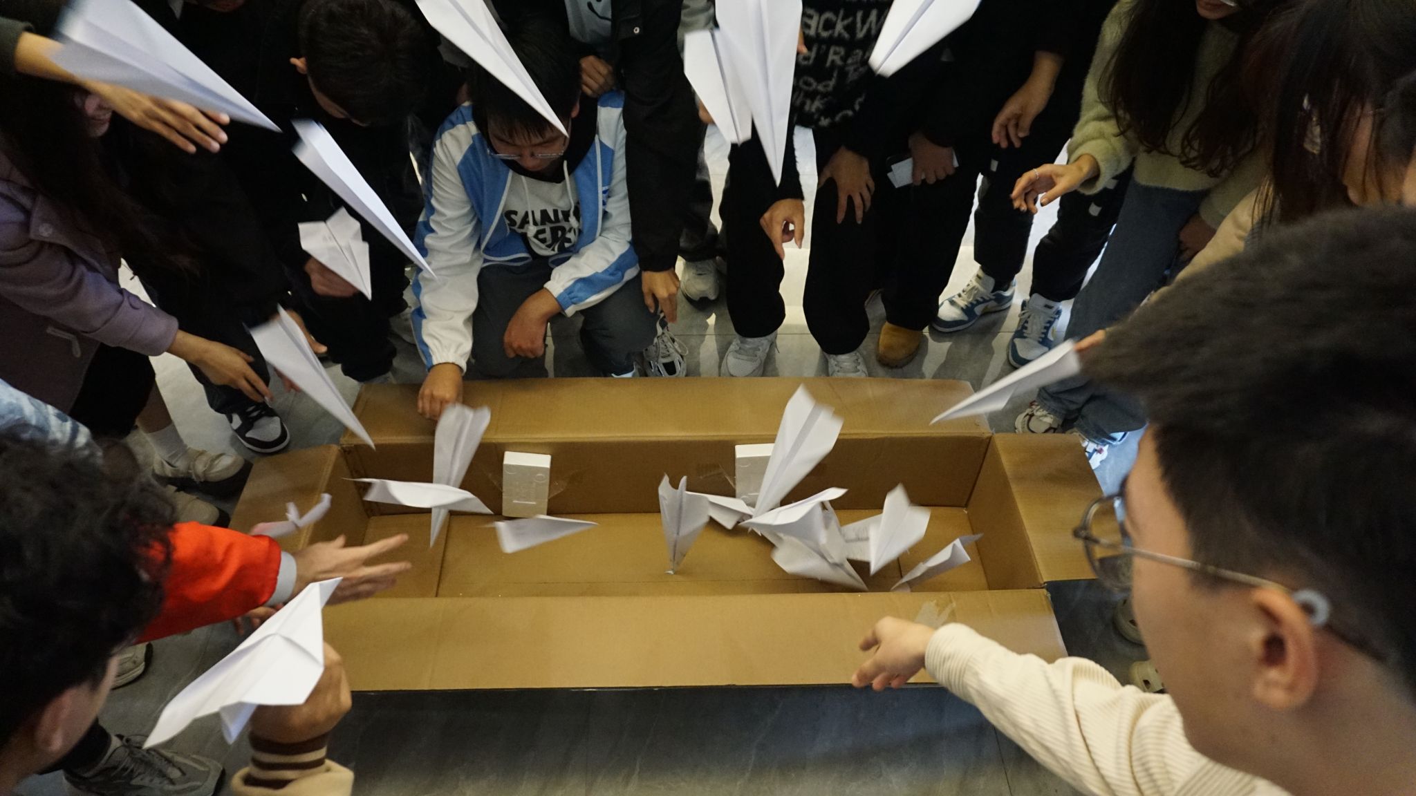 在人生的旅途中,烦恼是不可避免的。即便是那些总是笑容满面的人,也可能会默默地背负忧愁。此环节,同学们挥笔在纸上写下自己的烦心事,并将其折叠成飞机,一并放飞,同学们的忧愁随之消散,愿这些烦恼一去不返。