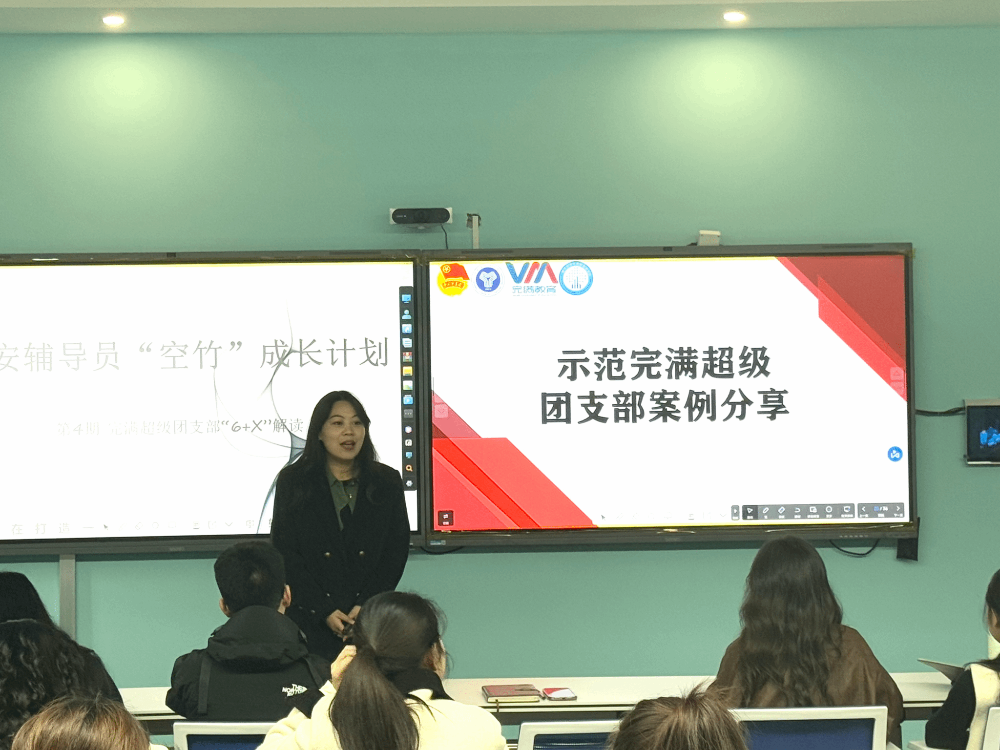 对完超活动有了基本了解之后,潘锐书记同大家分享了历年优秀案例。通过一个个真实的案例,潘锐书记提炼出了在开展完满超级团支部活动须特别注意的三点内容:一要发挥团支部的组织优势,明确分工、责任到人。二要大家齐心协力、互相配合,共同克服时间紧、任务重等困难。三要要特别注重活动的宣传和推广,通过社交媒体、海报等多种渠道,让更多的同学了解和参与到我们的活动中来。