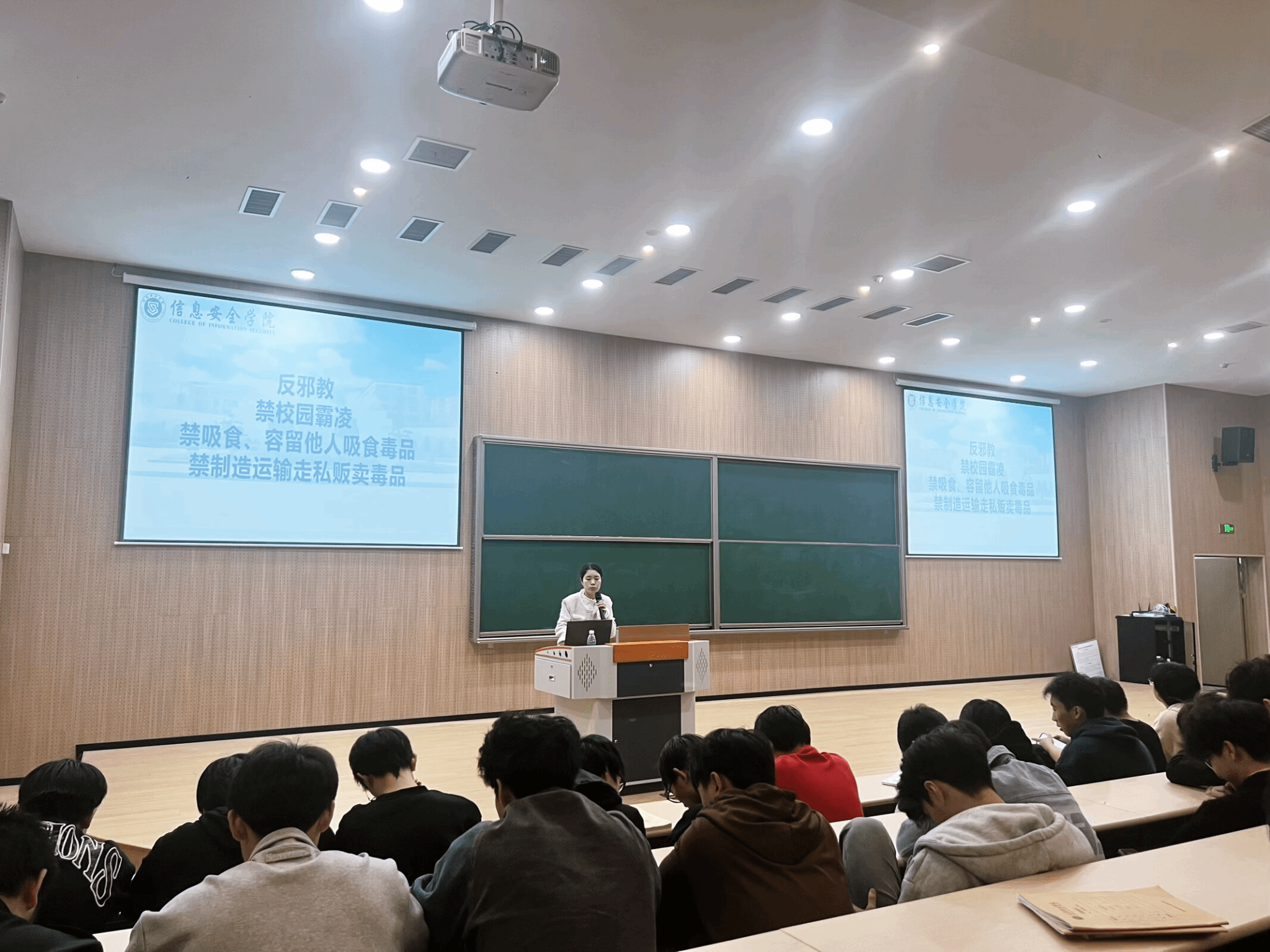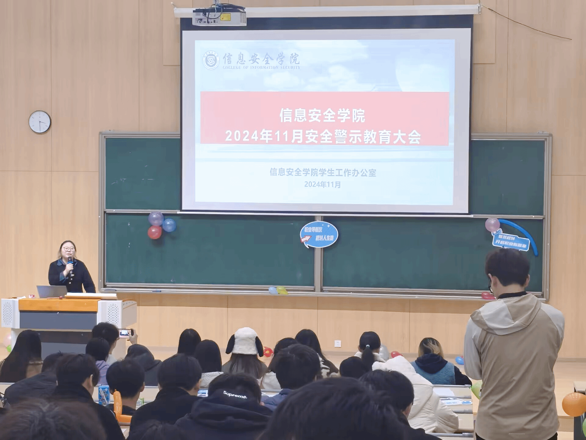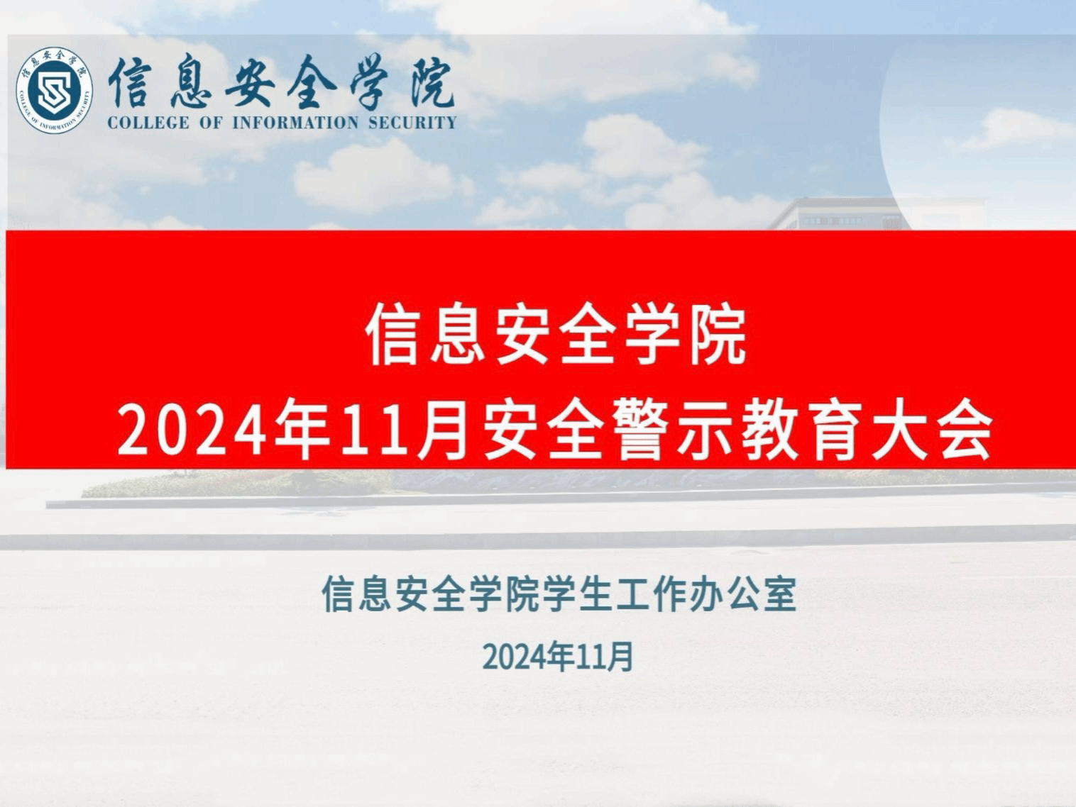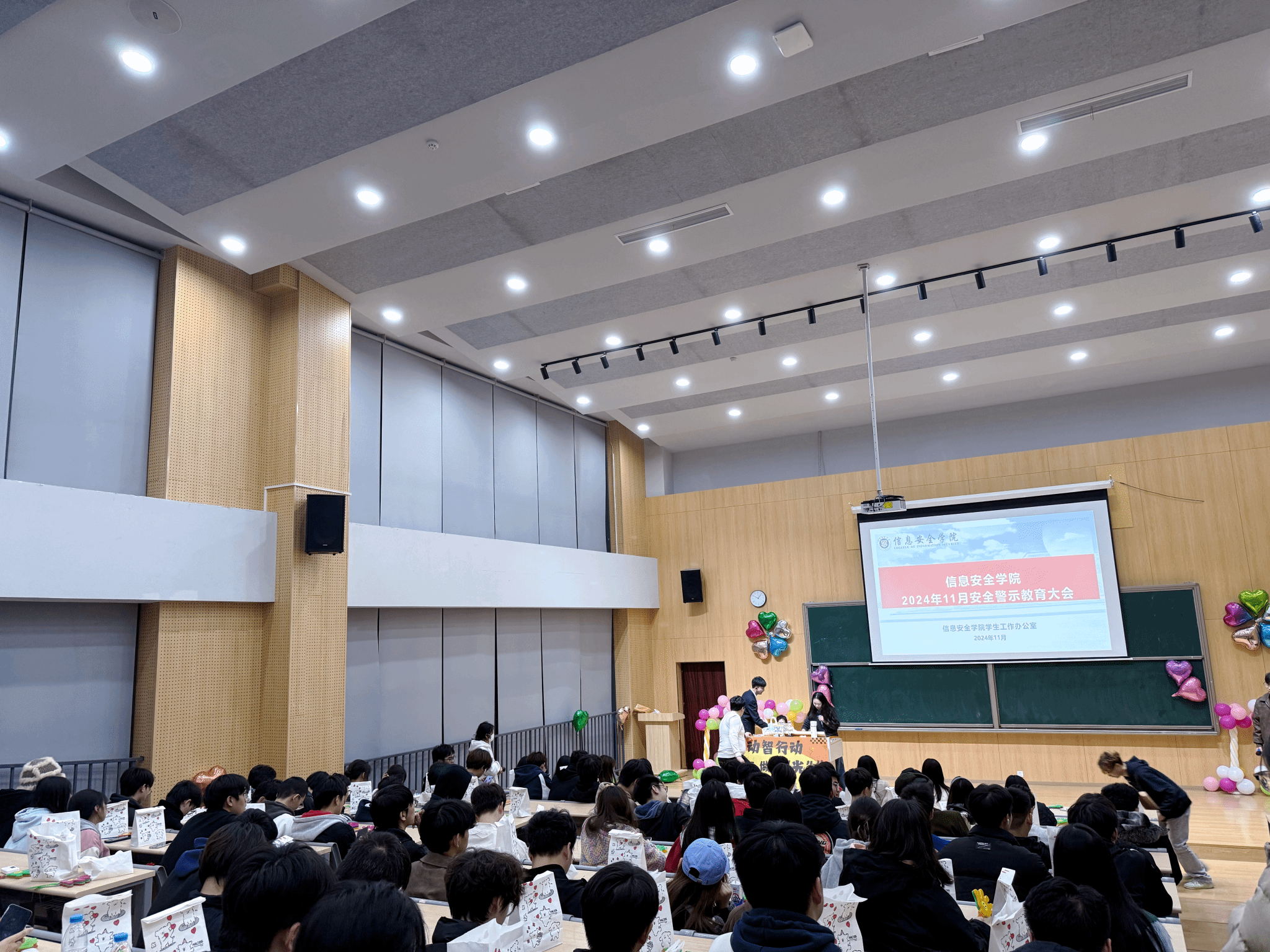 为切实提升全体学生的安全意识,有效防范各类安全事故的发生,并营造安全和谐的校园环境,信息安全学院于11月份召开了安全教育警示大会。本次大会由信息安全学院全体师生共同参与,围绕冬季校园安全的多个重要方面展开深入探讨与交流,进一步推动信安反诈专项行动持续深入开展。