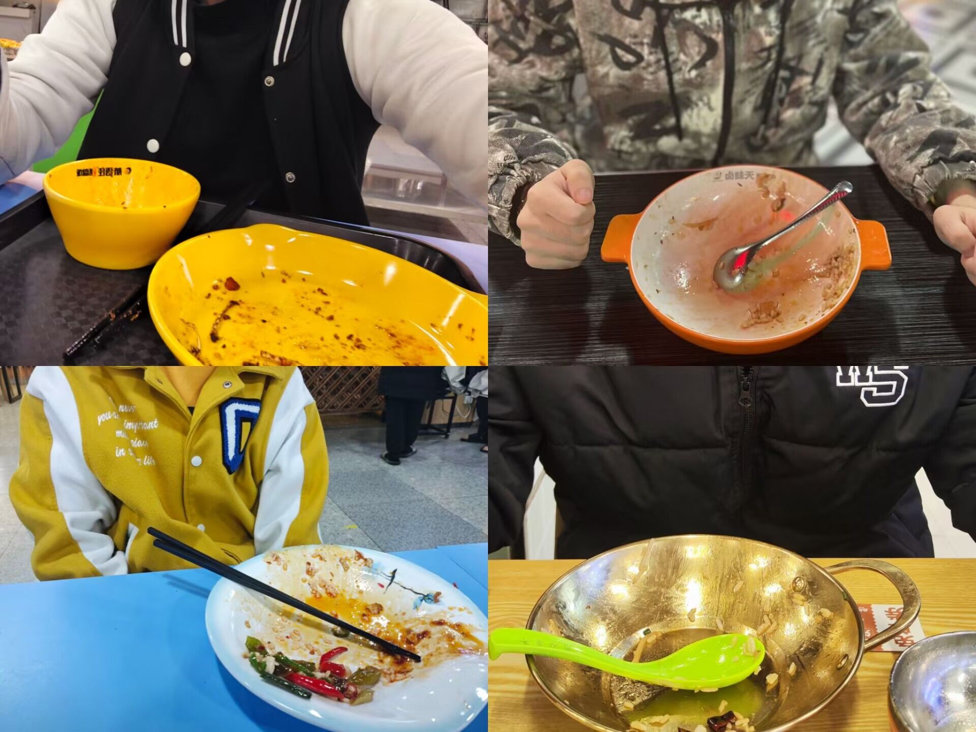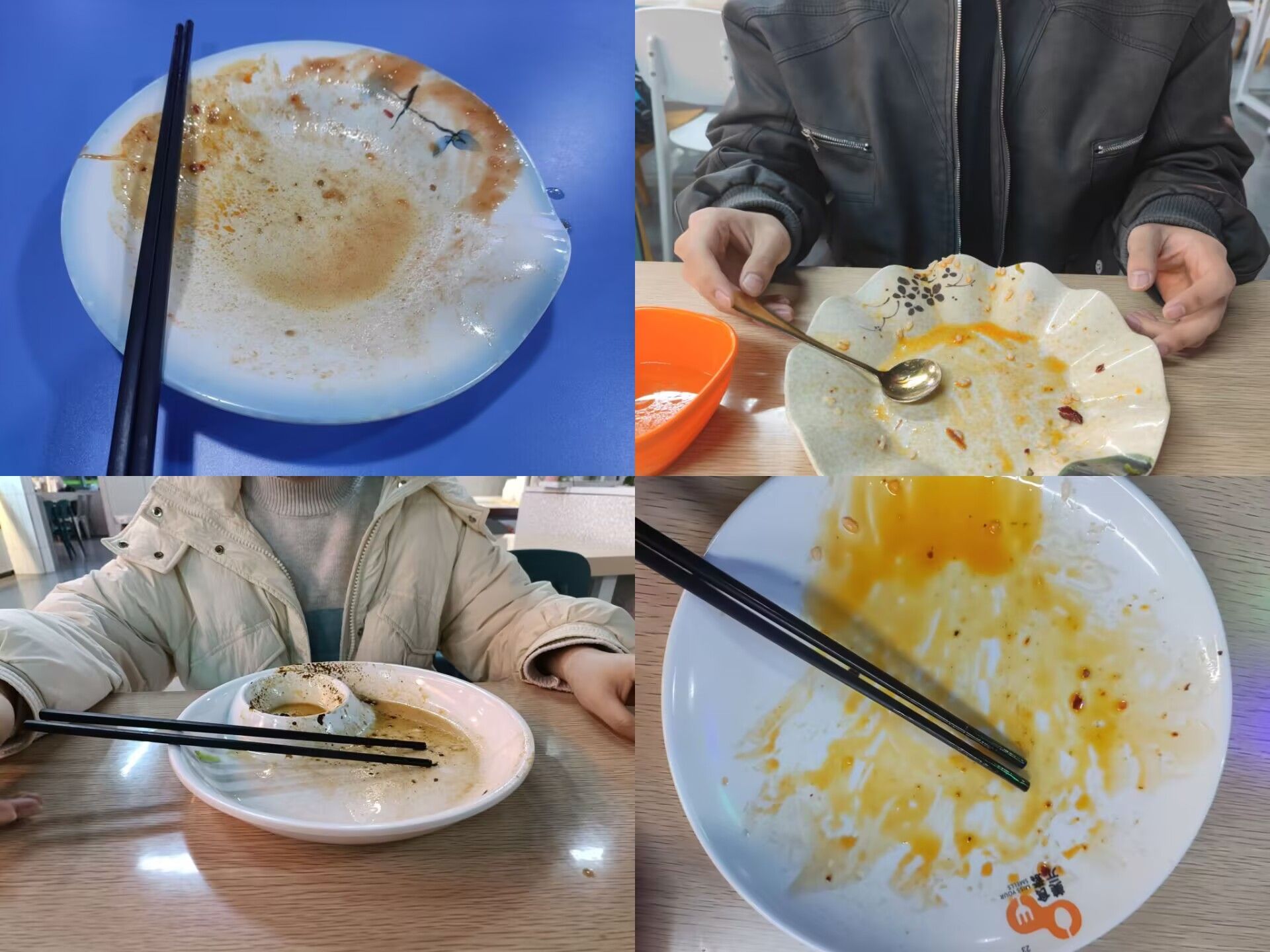 11月22日到25日,每位参与者都满怀热情地投入到这场意义非凡的行动中。当每天用餐完毕,眼前呈现出一片干干净净、毫无剩余的光盘时,他们的脸上总是洋溢着满足而开心的笑容。这时,参与者们会拿起相机捕捉这个珍贵的瞬间。镜头下,那空空的“干净”盘子,不仅映射出他们对食物的感恩之心,更闪耀着他们节约粮食的坚定信念。随着“咔嚓”一声清脆快门声的响起,每一次光盘都被细心地记录下来,并发送到活动群里自己专属的相册中。