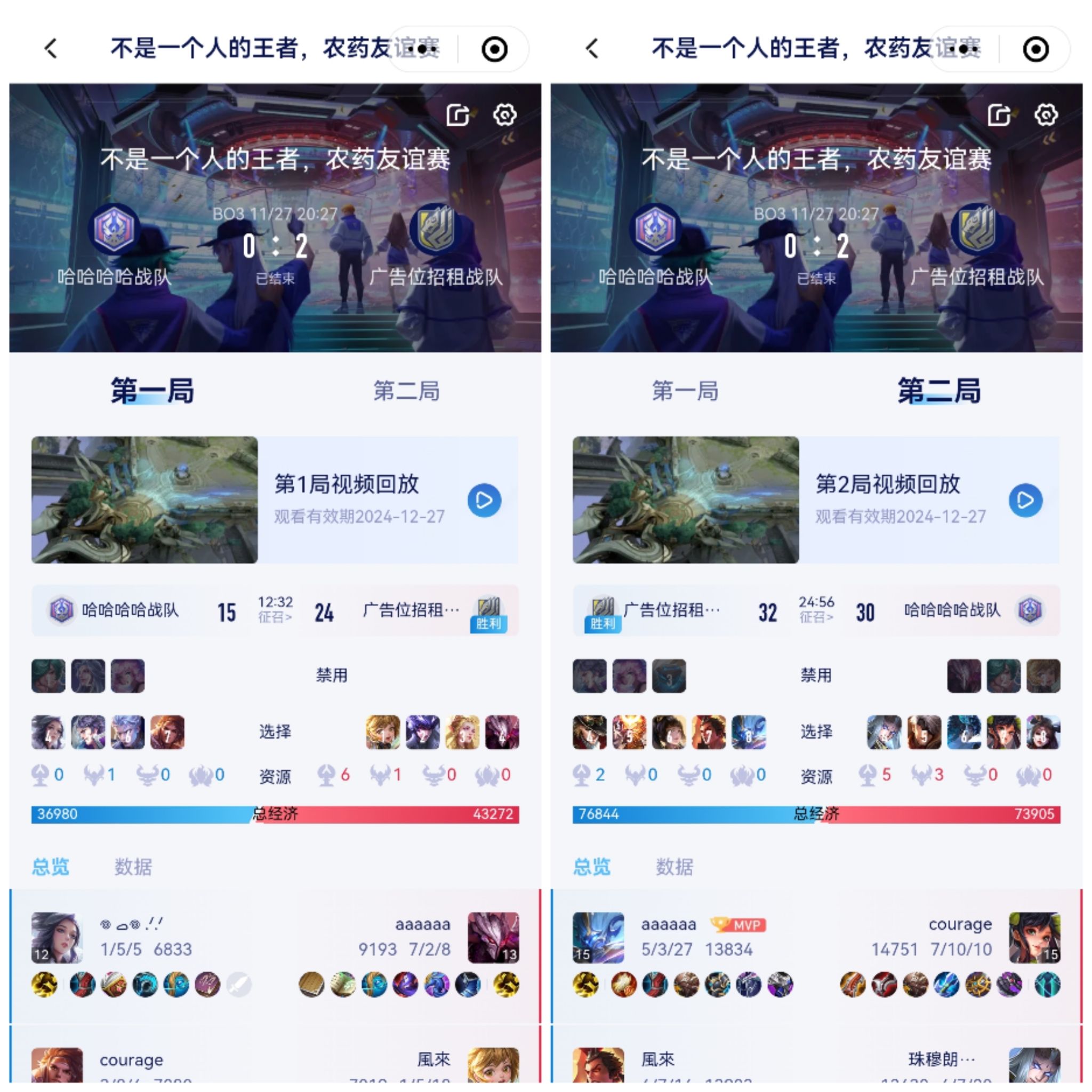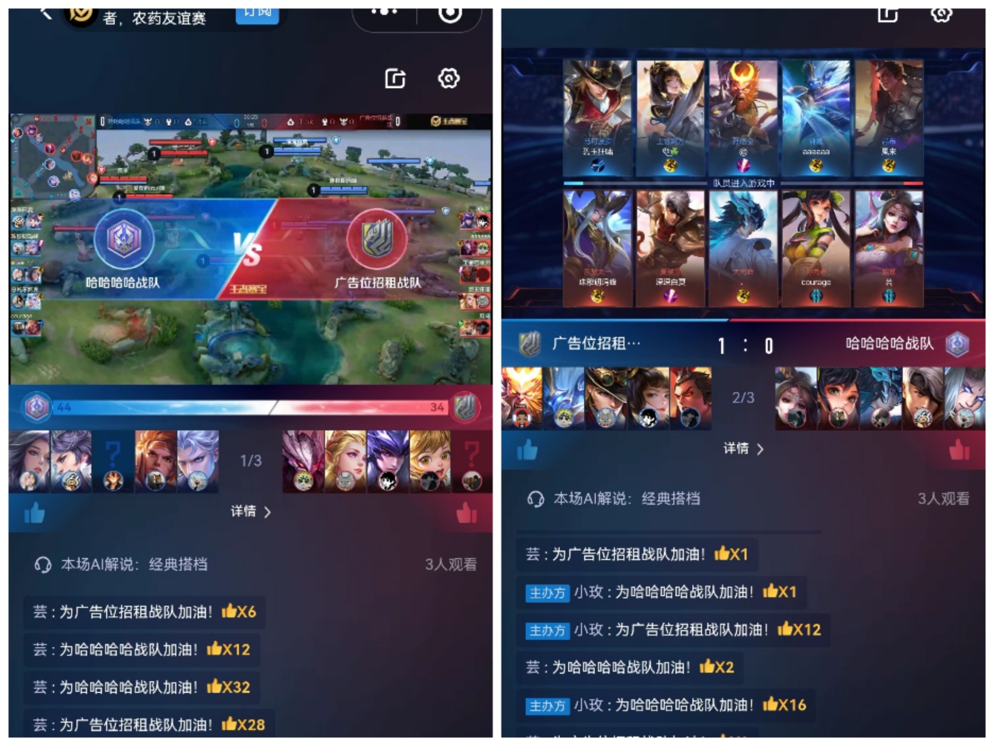比赛在紧张而激动人心的氛围中拉开帷幕,双方战队——哈哈哈哈战队与广告位招租战队严阵以待,都为了胜利全力以赴。比赛过程中,选手们凭借着精湛的操作技巧、默契的团队配合以及对游戏局势的敏锐判断,为观众们呈现了一场场激烈的对抗。