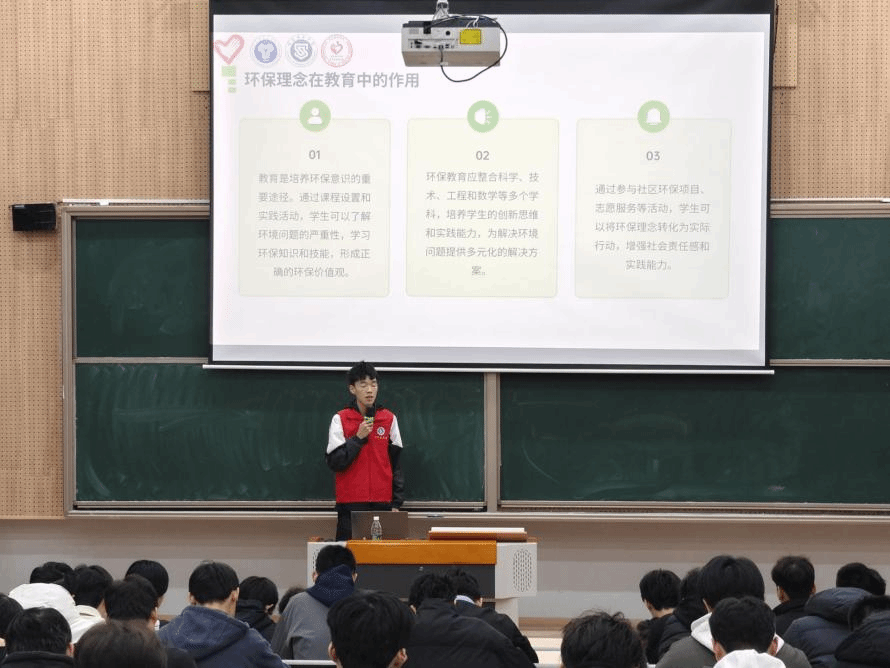 在同学们积极的能量收集后,我们的活动也从线上转到了线下,主持人通过PPT讲解为同学们介绍了如何在校园里进行低碳生活。在主持人介绍之后,参与者们也积极上台分享自己是如何用实际行动来完成低碳校园生活的。从同学们的宣讲中,我们感受到了想要保护环境的热血激情,每个人都在改变自己的生活方式,让我们的校园生活变得更加“绿色”。