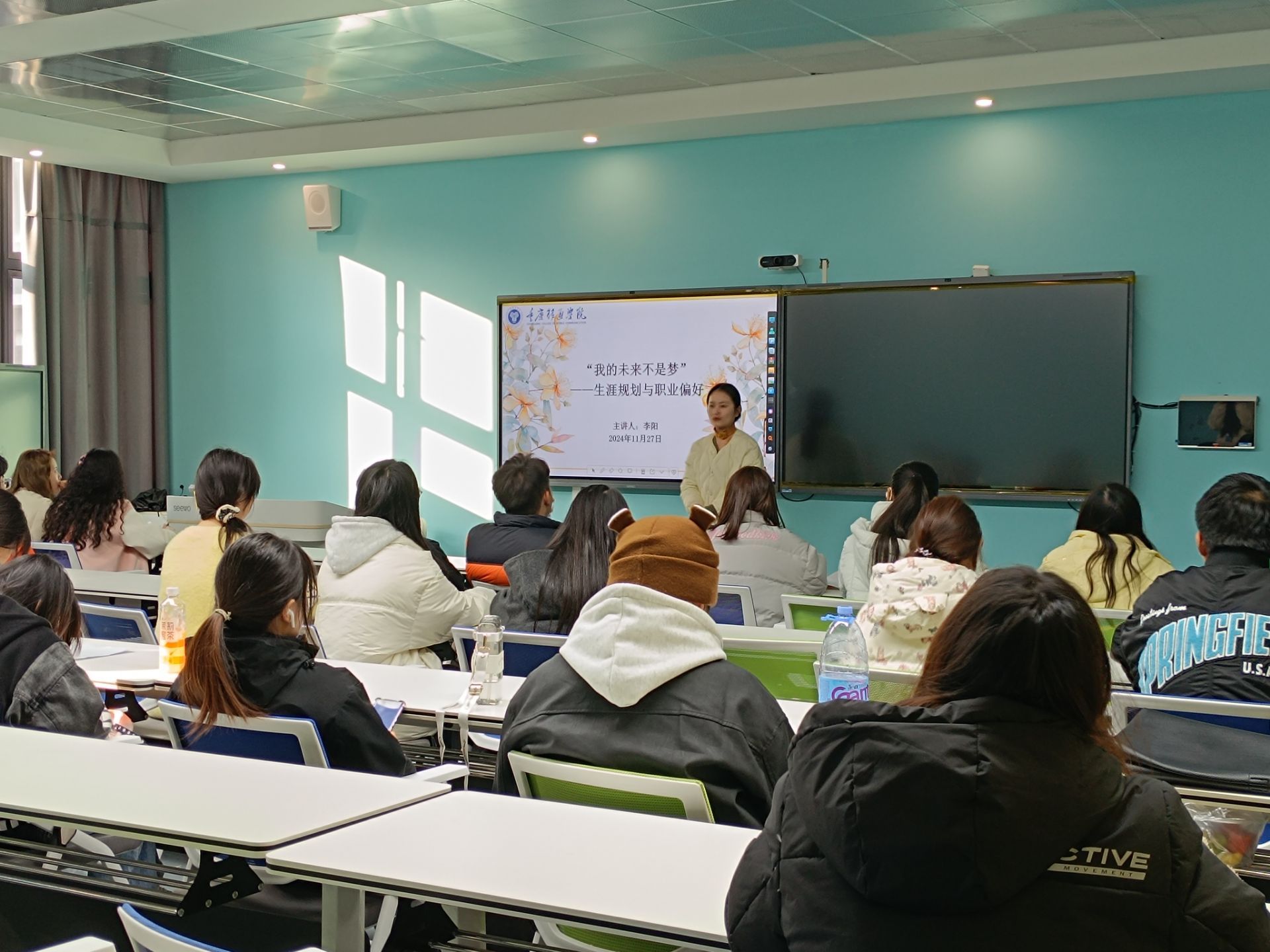 为充分发挥兼职心理教师身份的育人功能,帮助24级心理委员提升自我技能与综合素质,2024年11月27日,信息安全学院辅导员、心理中心兼职心理教师焦梦玲、李阳在贤者楼217,面向信息安全学院24级心理委员举办了“探索心灵深处的自我”“我的未来不是梦——生涯规划与职业偏好”主题讲座。