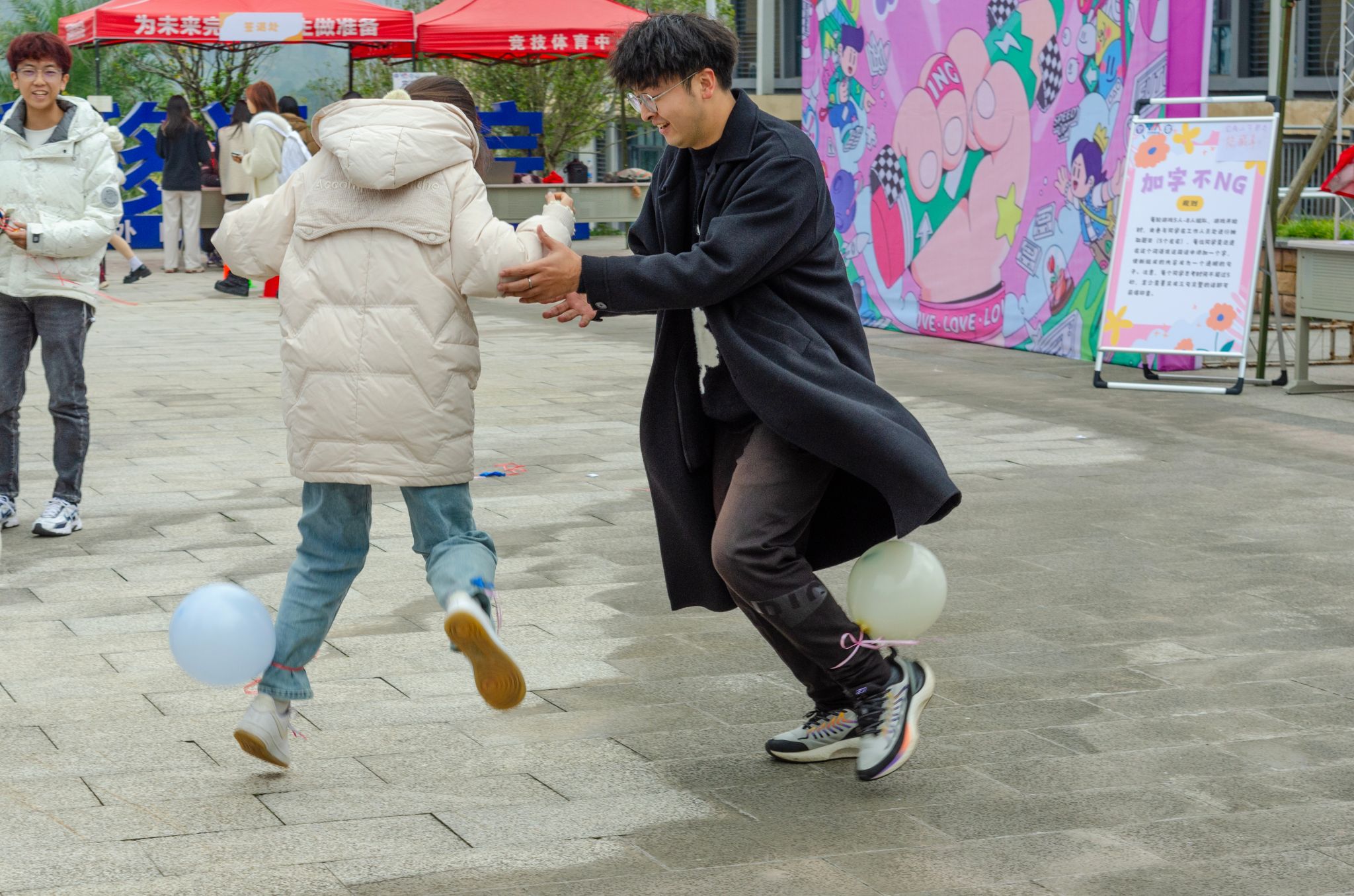烦恼大爆炸——同学们首先将各自的“烦恼”吹进了色彩斑斓的气球里,仿佛给这些烦恼穿上了一袭轻盈的外衣。接着,他们用鲜艳的丝带将这些满载心事的气球绑在脚踝上。游戏正式开始,同学们在限定区域内灵活穿梭,躲避对手的攻击,同时又瞅准时机去踩爆对方的气球。每当一个气球被踩爆,都会伴随着同学们的欢笑声和那份烦恼解脱的轻松感。最终,留在场上的队伍不仅收获了胜利的喜悦和一个额外的盖章奖励,更重要的是,所有参与者在游戏中释放了内心的压力与烦恼,获取了愉悦与轻松的心情。