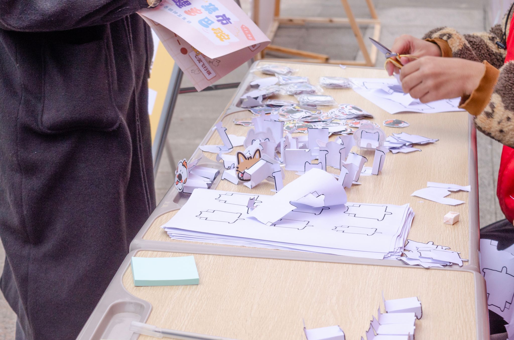 小狗集市——参与者们在便利贴上写下心里话、愿望或祝福,这些满载个人情感与期待的话语,随后成为他们“领养”小狗贴纸时的特别“纽带”。每一只形态各异、活泼可爱的小狗贴纸,都仿佛带着自己的故事,等待着与新主人共同编织新的篇章。