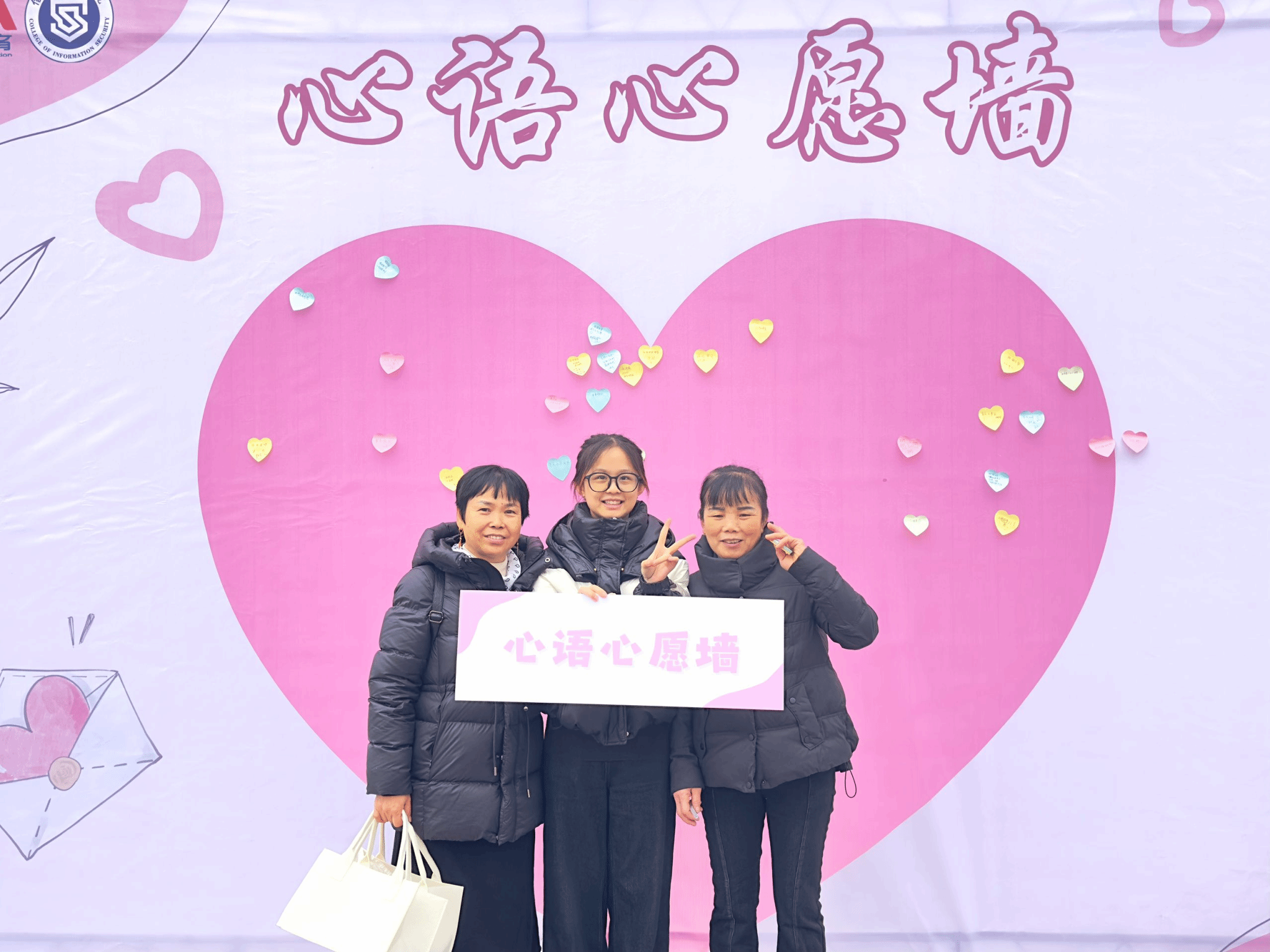 心语心愿墙——同学们手持自己的“心愿”,小心翼翼地将其粘贴在心愿墙上。这面墙,渐渐被各式各样的便利贴填充,成为了所有同学的梦想海洋。每一张便利贴都承载着同学们对未来的憧憬与希望,有的愿望简单而温馨,有的则宏大而遥远。在这面墙前,还留下了一张张学生和家长温馨合影的笑脸,他们共同见证着这份成长的喜悦与梦想的启航。