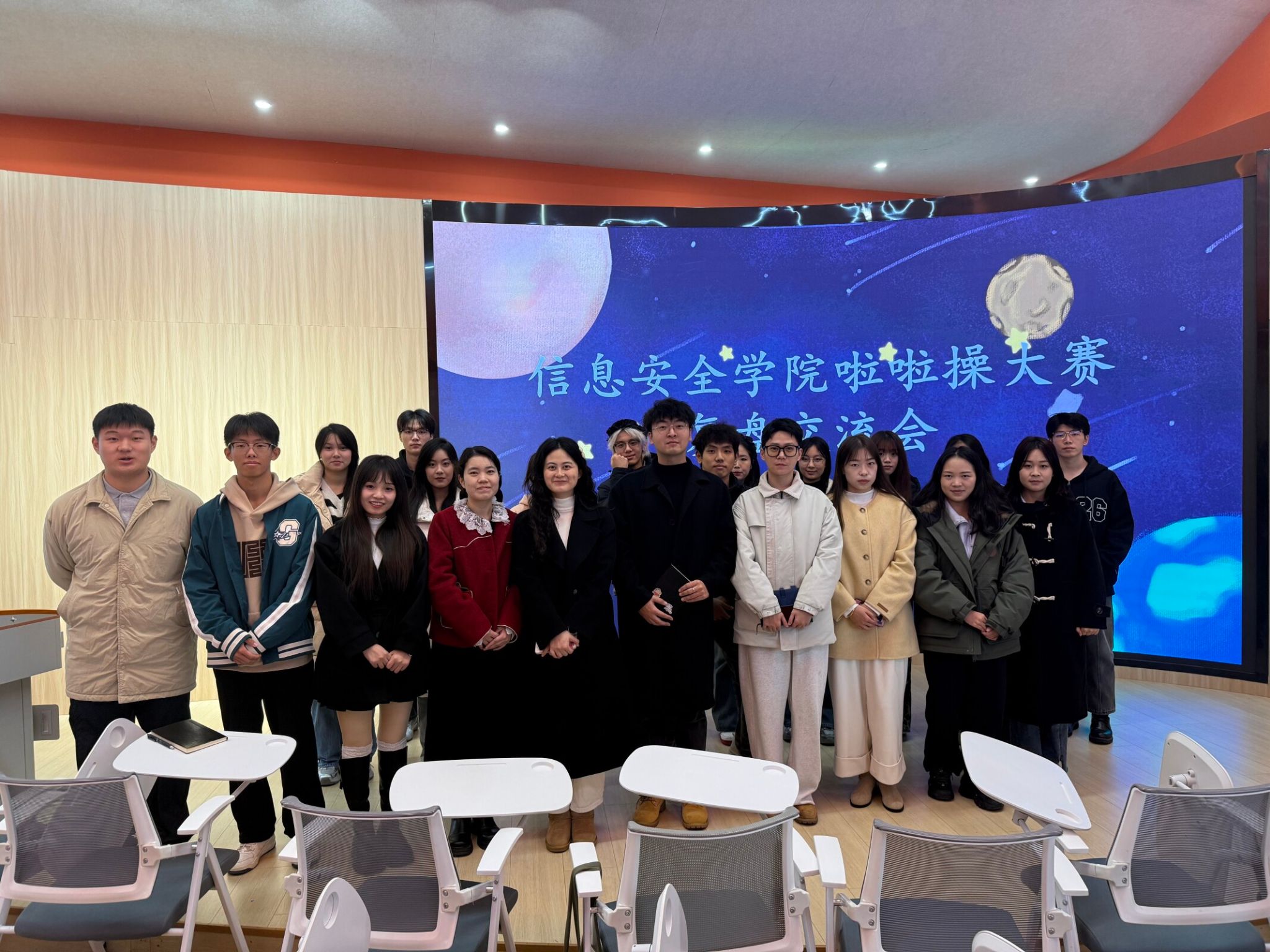 在激情四溢的啦啦操大赛中,我院代表队凭借出色的表现荣获团体总分第三名的佳绩。为总结经验,规划未来,信息安全学院体育部于2024年12月2日在古剑含光报告厅召开了校园啦啦操大赛复盘交流会。本次会议由体育部指导老师郭福禄老师主持,汇聚了23级和24级的全体辅导员、参赛队员以及体育部的工作人员。此外,信息安全学院团总支书记温朝一老师也亲临现场,为本次会议增添了更多的指导和支持。