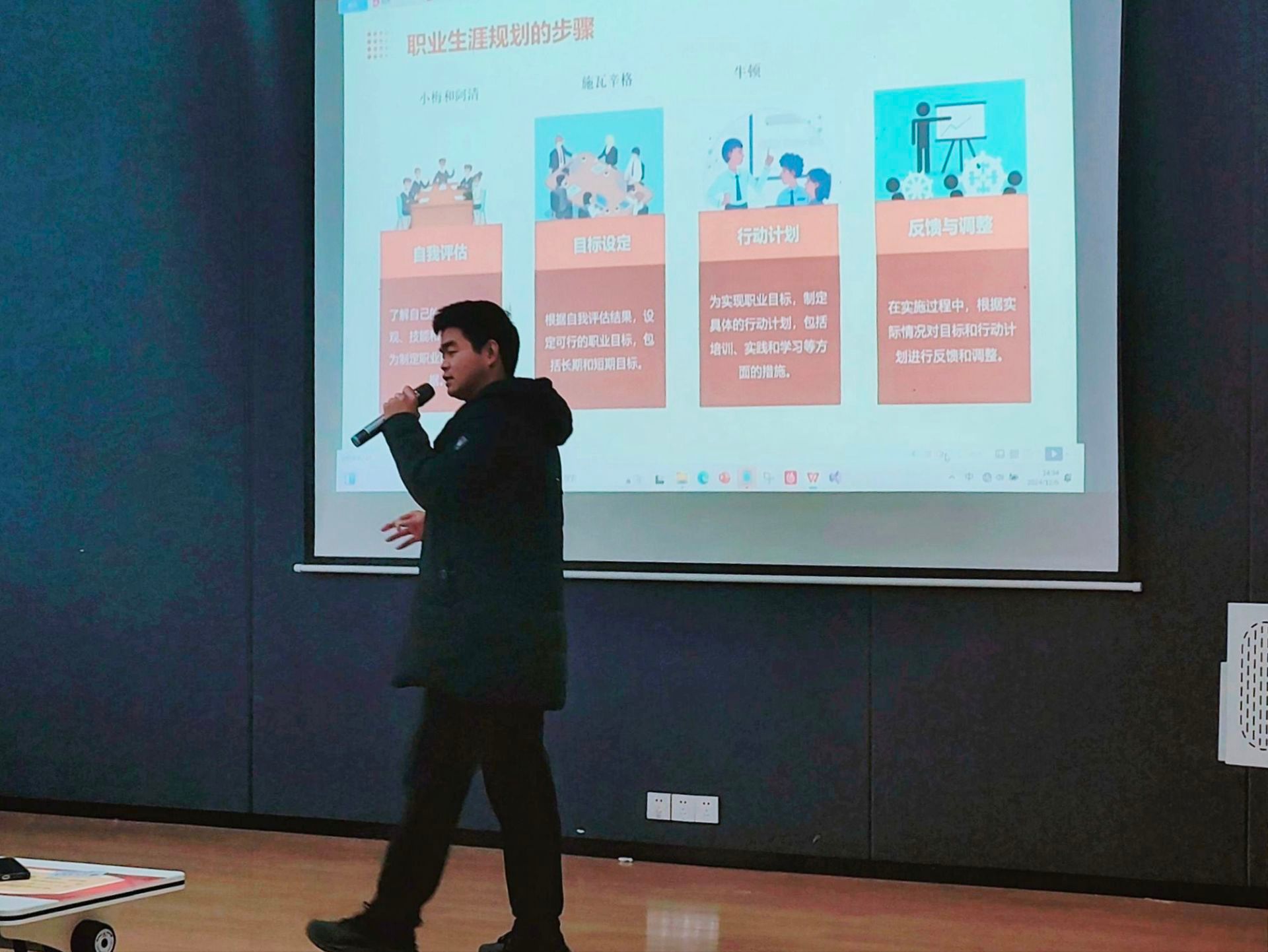 活动开始时,李跃老师便点明“自我评估”的关键地位。了解个人性格特质、兴趣爱好及优势短板,是规划职业路径上的基石。老师通过剖析典型案例,引导同学们复盘自身优势与短板,让每个人明晰自己的职业发力点。