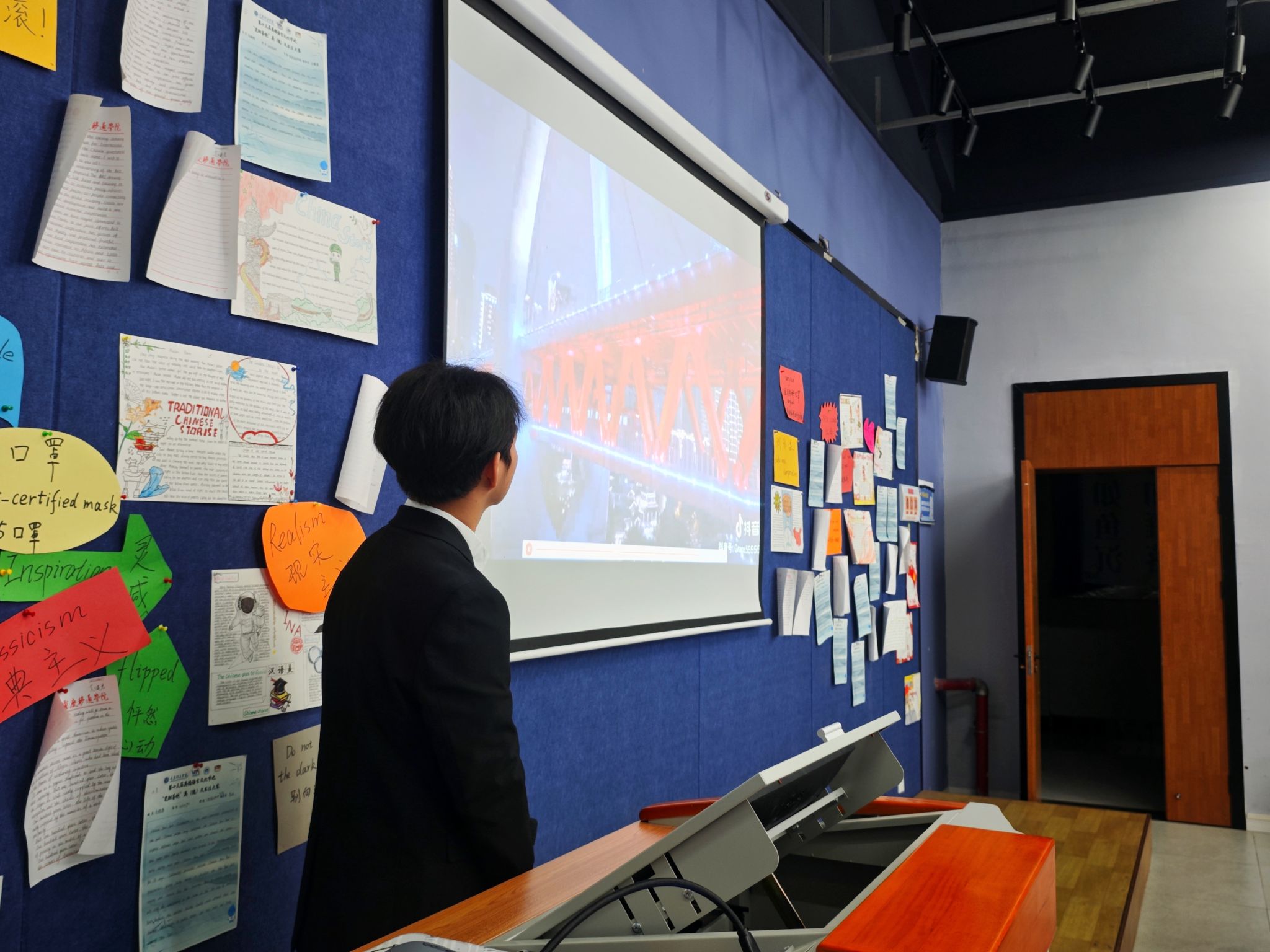 欲了解重庆的变迁,掌握其历史发展脉络至关重要。首先是“重庆,你我知多少?”头脑风暴环节,主持人向同学们抛出有关重庆历史的相关问题,同学们积极讨论并纷纷作答,主持人进行适当补充与拓展。随后来到短视频展播环节,在此环节向大家展示了重庆当前的风貌,包括城市中高耸的摩天大楼,穿梭其间的轻轨交通,以及夜晚的绚丽灯光,这些元素共同彰显了重庆“魔都”的魅力。
