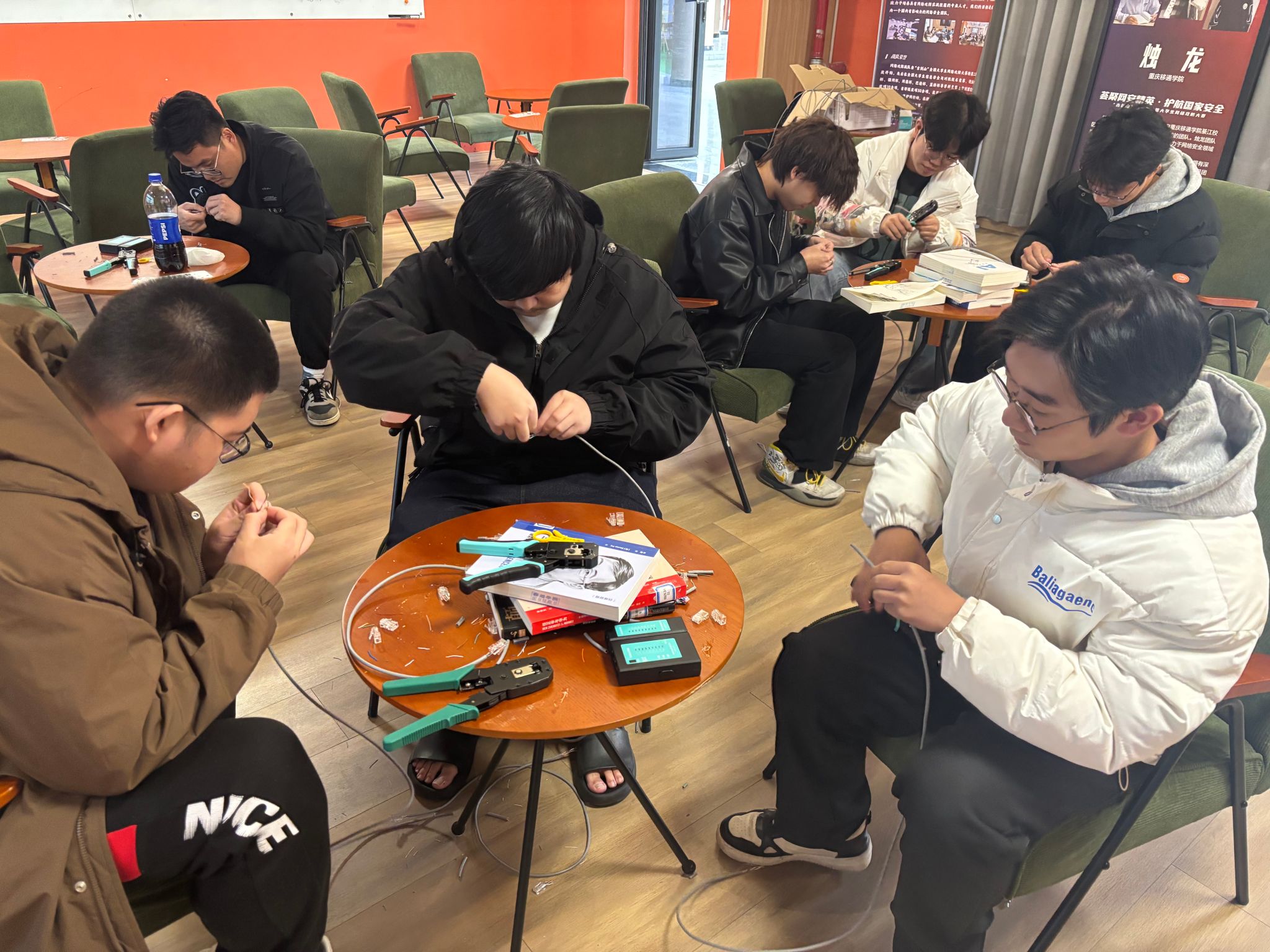 当所有同学都学会网线制作后,老师们便通过比赛的方式来让同学们检验自己学习的成果。同学们在比赛的过程中将刚刚所学知识学以致用,在此过程中认真操作,其中速度最快的同学以3分48秒的优异成绩赢得了本次比赛的第一名。最后三位老师为所有同学颁发奖品,并合照留念。同学们对本次活动评价也非常高,他们认为通过活动不仅学到了有趣的知识,同时也锻炼了个人的动手能力,还收获了满满的成就感。同学们也表示希望今后可以举办更多类似的活动,丰富课余生活。