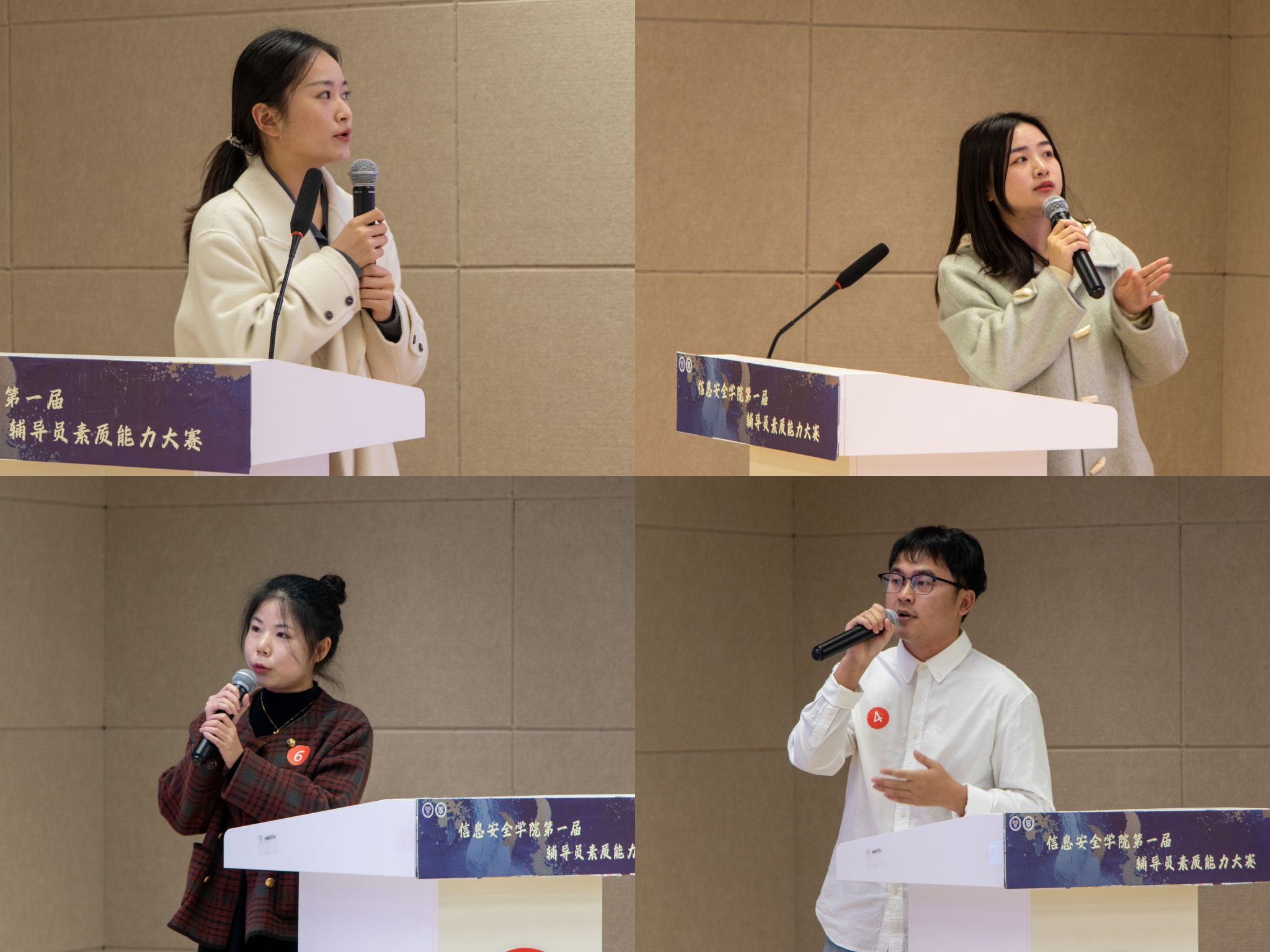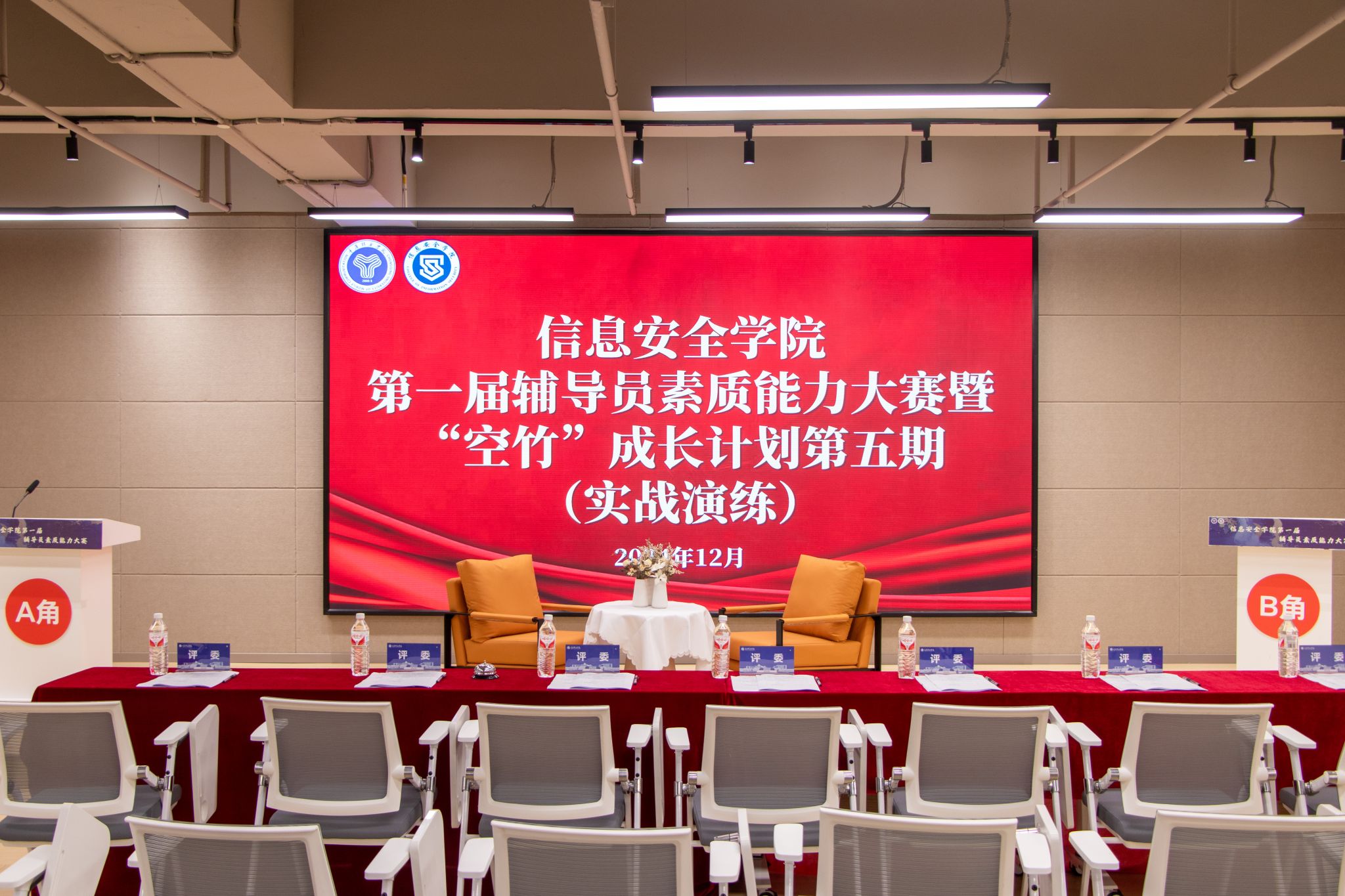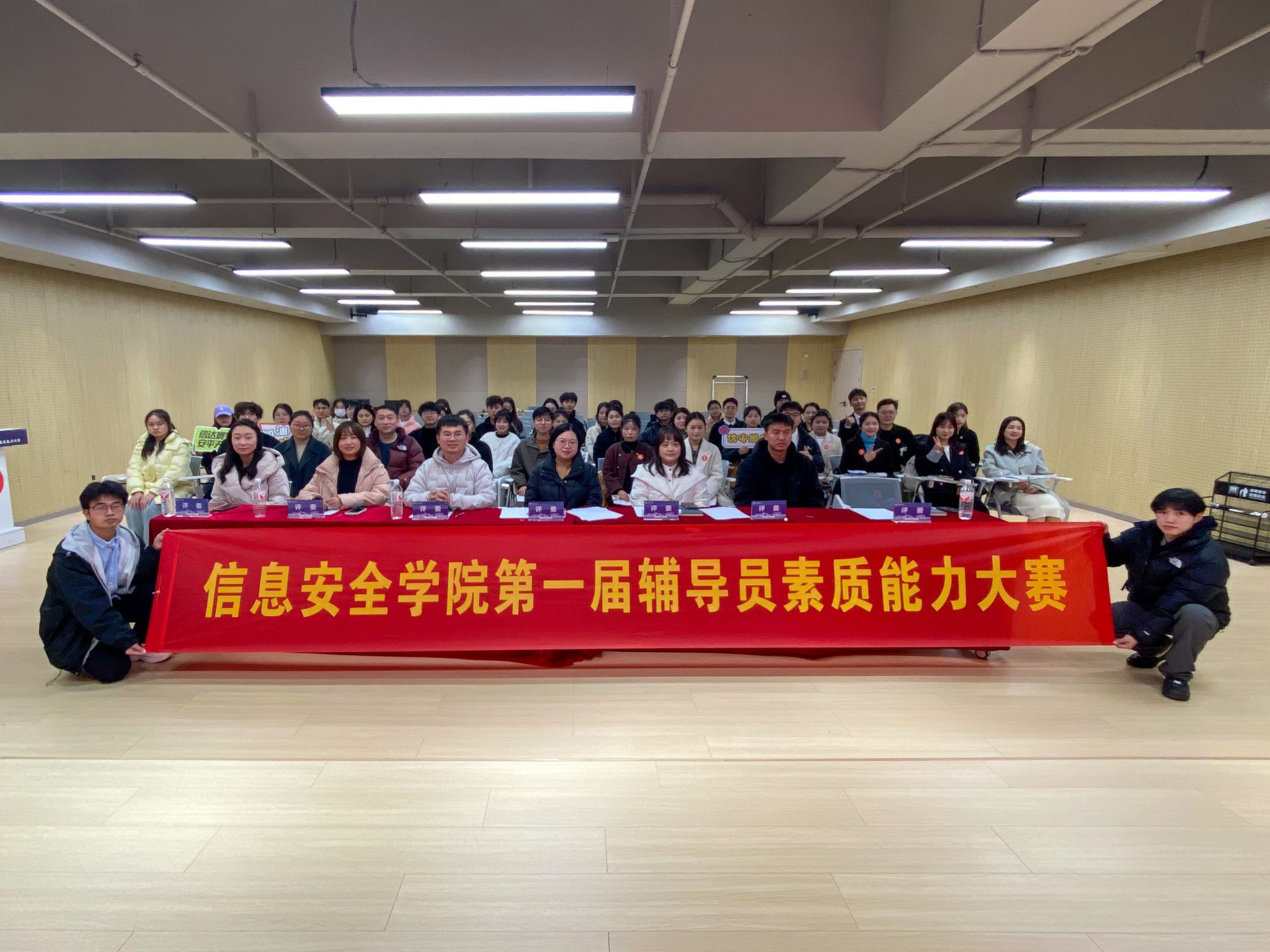 智慧辅导,润泽心灵之花。为提升信息安全学院辅导员的理论素养、专业能力和综合素质,努力让工作更贴切需求,推动辅导员队伍更加专业化、职业化发展,2024年12月9日,信息安全学院在完满教育综合服务中心报告厅开展第一届辅导员素质能力大赛暨“空竹”成长计划第五期。学院旨在打造一支既有专业实力又充满亲和力的辅导员团队,为学生的全面成长和教育事业的持续发展贡献力量。为确保比赛的权威和公正,此次比赛有幸邀请到就业创业指导与服务中心副主任毛敏,大数据学院学工副院长阙小梅,计算机学院学工副院长周俊,通信与信息工程学院团总支书记田海燕,宿舍管理中心副主任匡鹏,大学生心理健康教育与咨询中心副主任林红担任评委,共同见证这场精彩的比赛。