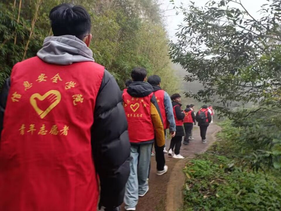 前往景区的途中,车内充满活力,同学们畅聊着对大自然的热爱,对即将开展的环保活动充满期待。抵达后,卫思雅同学步伐轻快地走上前,幽默而清晰地叮嘱大家注意安全,引得同学们欢声笑语。随后,她生动阐述了活动的意义,将古剑山比作受伤的自然精灵,同学们专心聆听,眼神坚定。最后,全体同学铿锵有力地宣读环保誓言,誓言声在山间回响,为这场环保行动拉开了精彩的序幕。