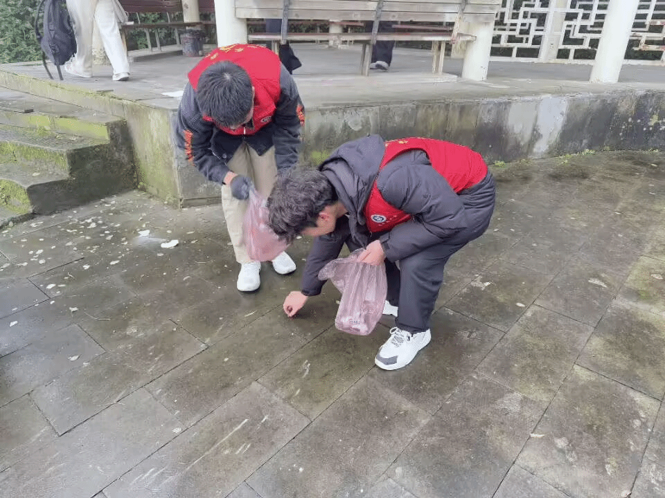同学们如同山间精灵,轻盈地穿梭于古剑山的怀抱。他们手持工具,目光锐利如炬火,沿着蜿蜒的步道细心寻觅,弯腰拾起那些隐藏在草丛和石缝间的废弃物。在观景台上,他们两人一组,默契地合作,手中的垃圾袋逐渐膨胀,记录着他们的辛勤与成果。在休息区,同学们不仅清理着环境,还向游客传递着环保的理念,他们的热情与真诚感染着每一位过客。每一次弯腰,都是对这片自然土地深深的敬意;每一滴滑落的汗水,都在为这美丽的风景增添光彩。